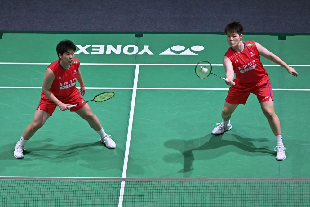 In women's doubles, Liu Shengshu and Tan Ning beat the United States pair of Francesca Corbett and Jennie Gai 21-8, 21-16.