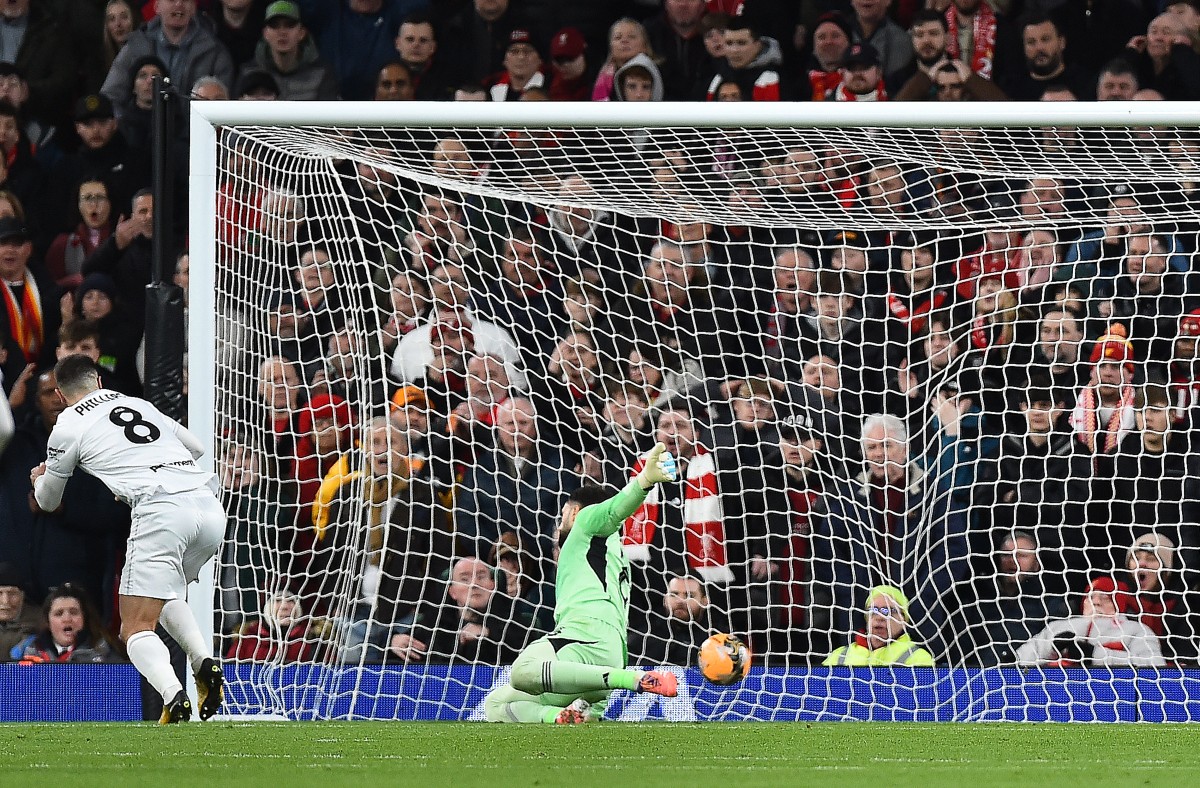 Barnsley's English midfielder #08 Adam Phillips scores the team's first goal past Liverpool's Georgian goalkeeper #25 Giorgi Mamardashvili during the English FA Cup third round football match between Liverpool and Barnsley at Anfield in Liverpool, north west England on Jan 12, 2026. (PHOTO / AFP)