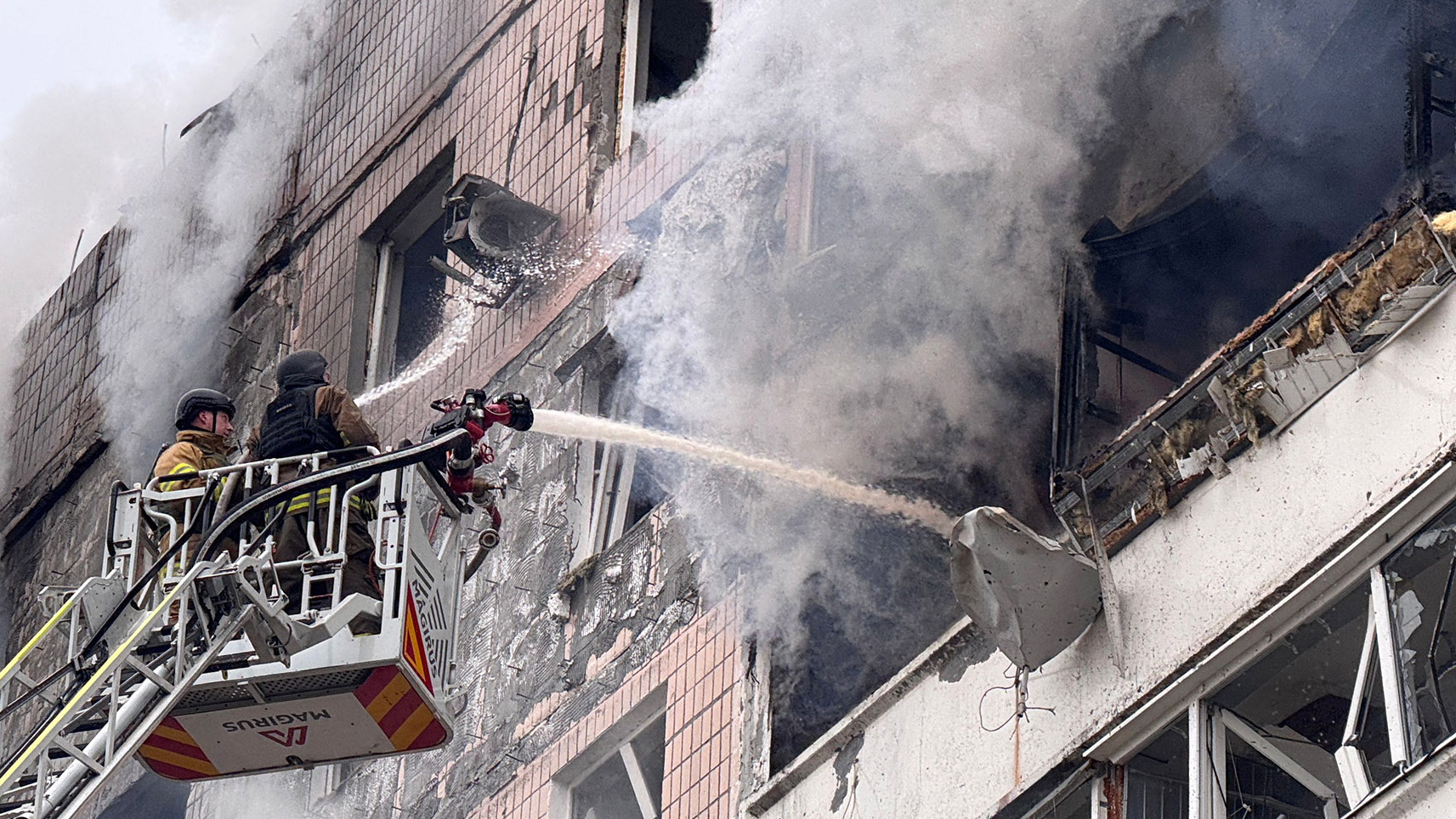 Rescuers work to extinguish a fire in a damaged building following an air attack in Zaporizhzhia, near the front line of the ongoing Russia-Ukraine conflict on Dec 17, 2025. (PHOTO / AFP)