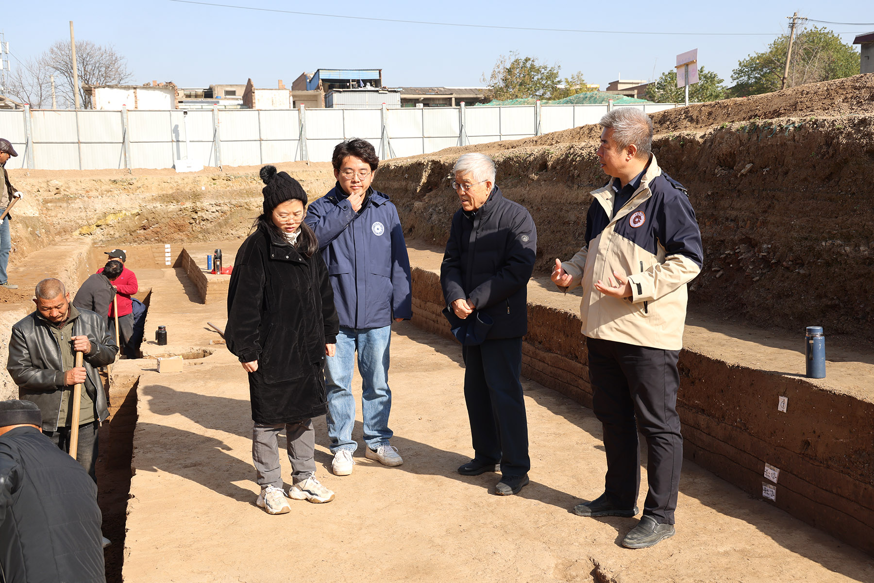 Archaeologists discuss their latest findings at the Epang Palace site. (PROVIDED TO CHINA DAILY)