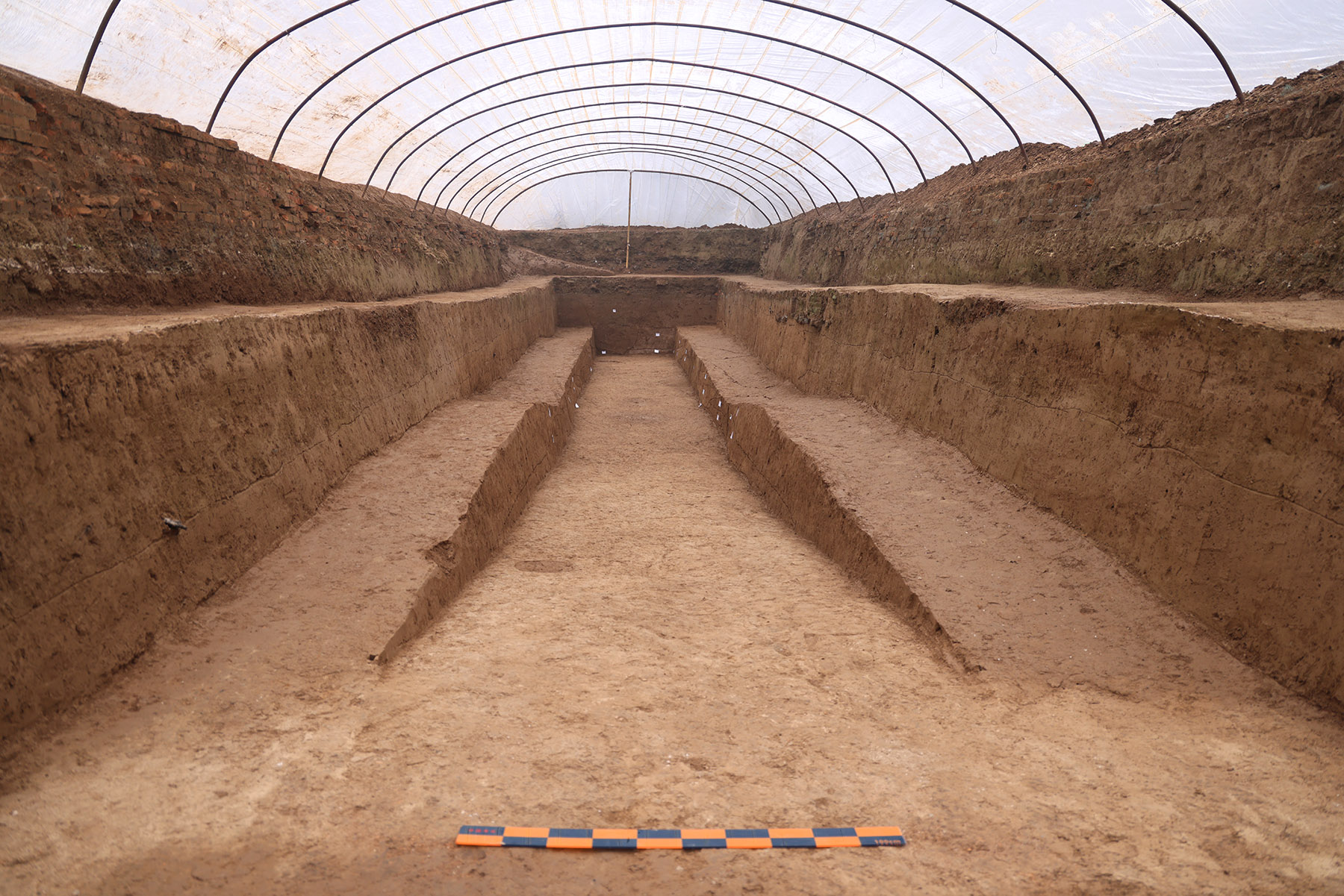 Qin laborers might have drained the lake first, followed by treating the underlying silt to achieve a relatively uniform thickness. After this, foundation ramming was carried out in sections.