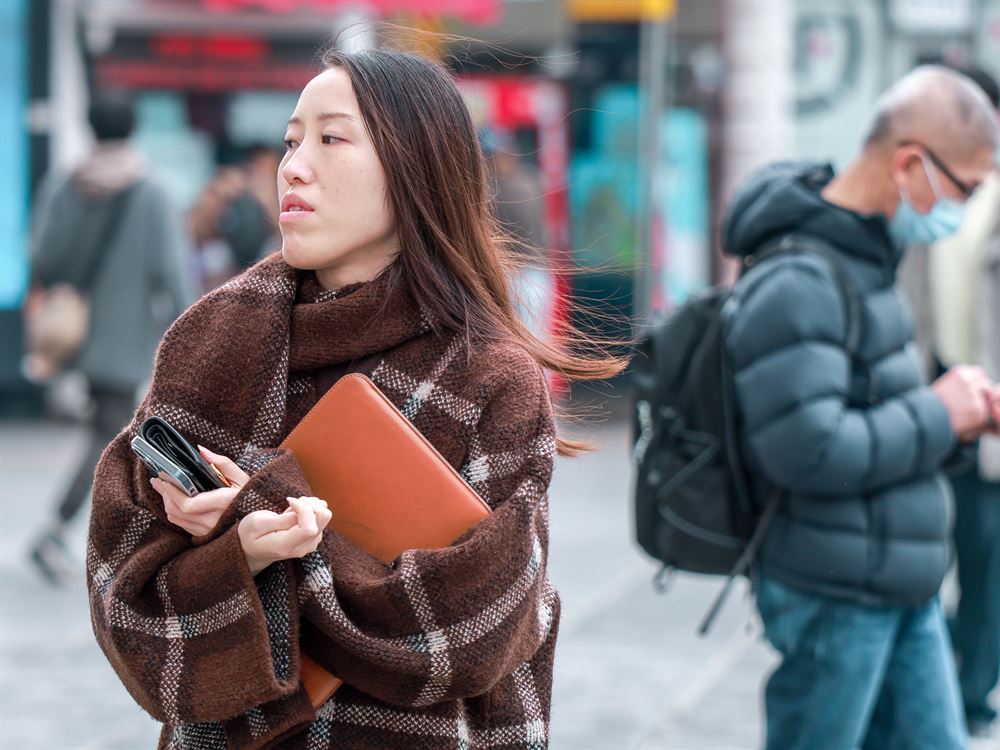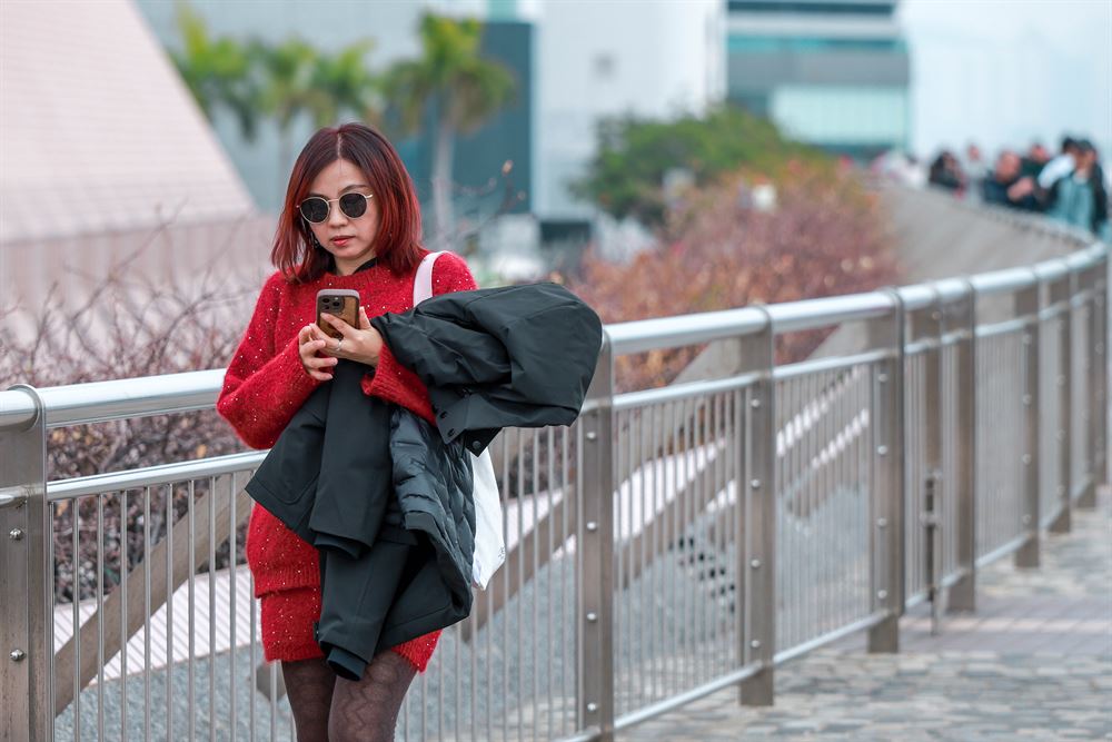 A woman walks during a cold and windy weather at the Tsim Sha Tsui promenade in Hong Kong on Jan 23, 2026. (ANDY CHONG / CHINA DAILY)
