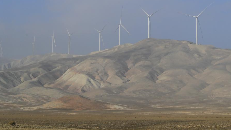 Standing at the booster substation of a new wind farm in eastern Azerbaijan, he looked up toward the ridgeline -- one now dotted with towering white wind turbines.