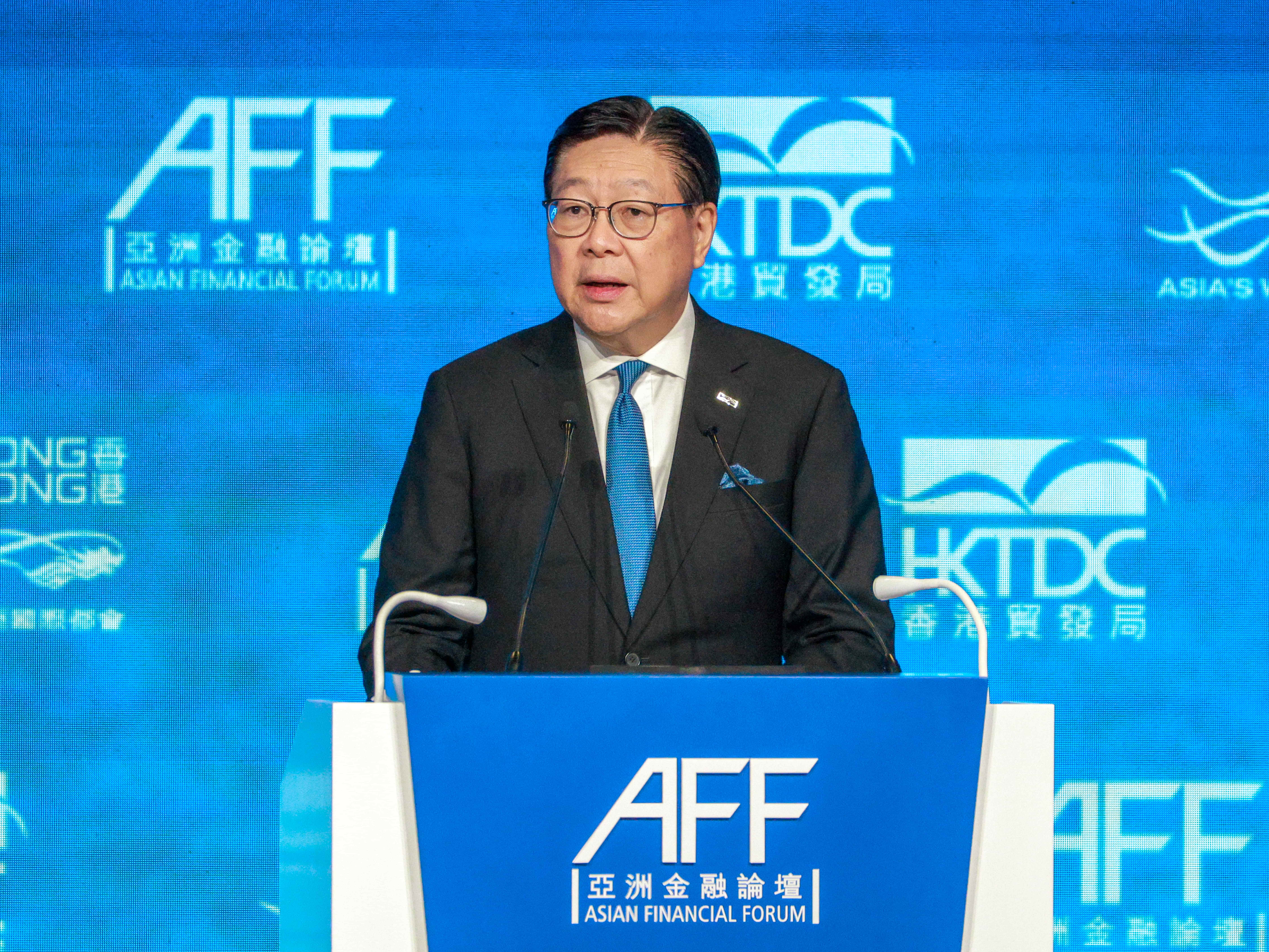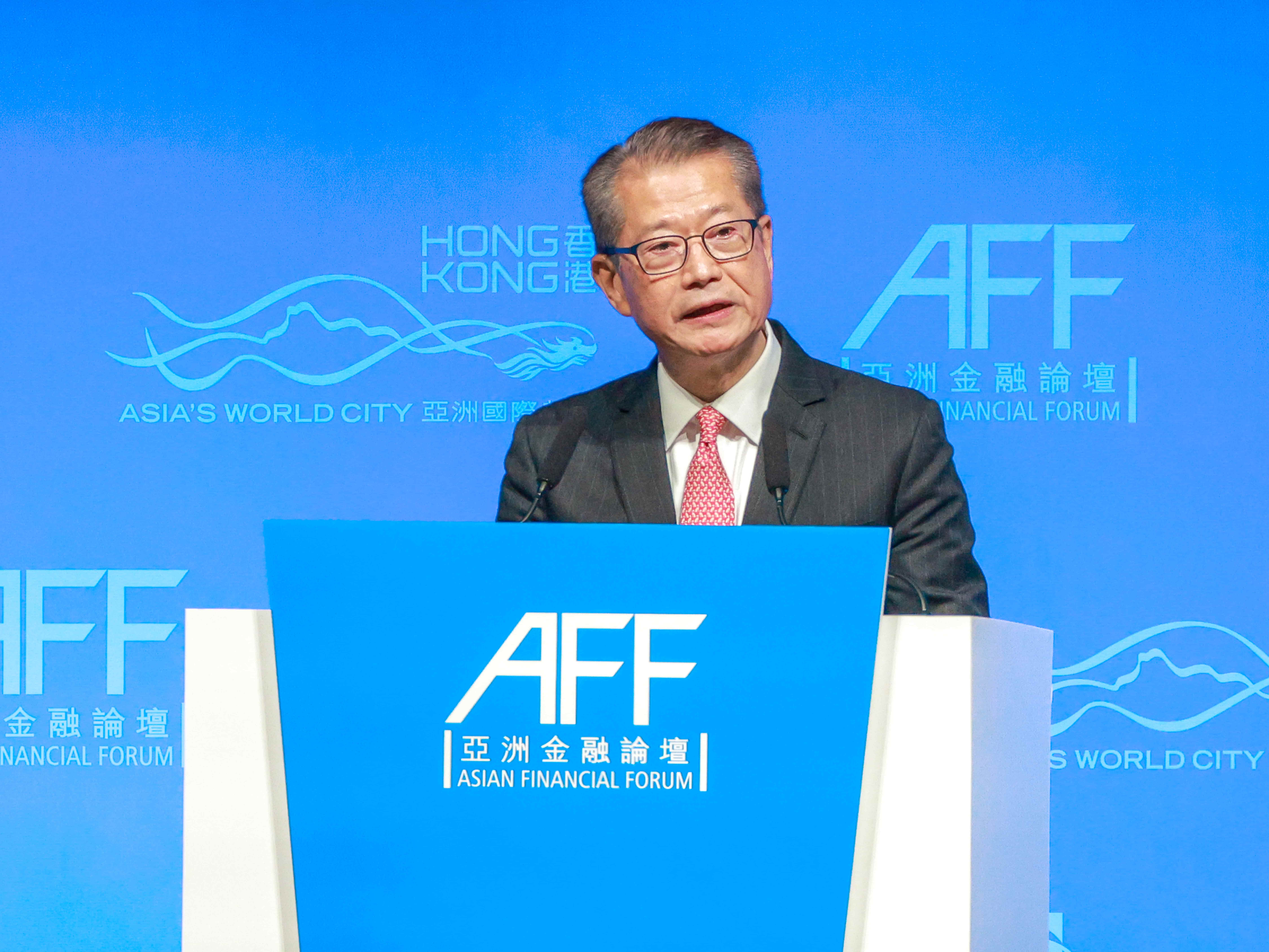 Financial Secretary Paul Chan Mo-Po delivers a welcome remark at the Keynote Luncheon of the Asian Financial Forum 2026 in Hong Kong on Jan 26, 2026. (ANDY CHONG / CHINA DAILY)