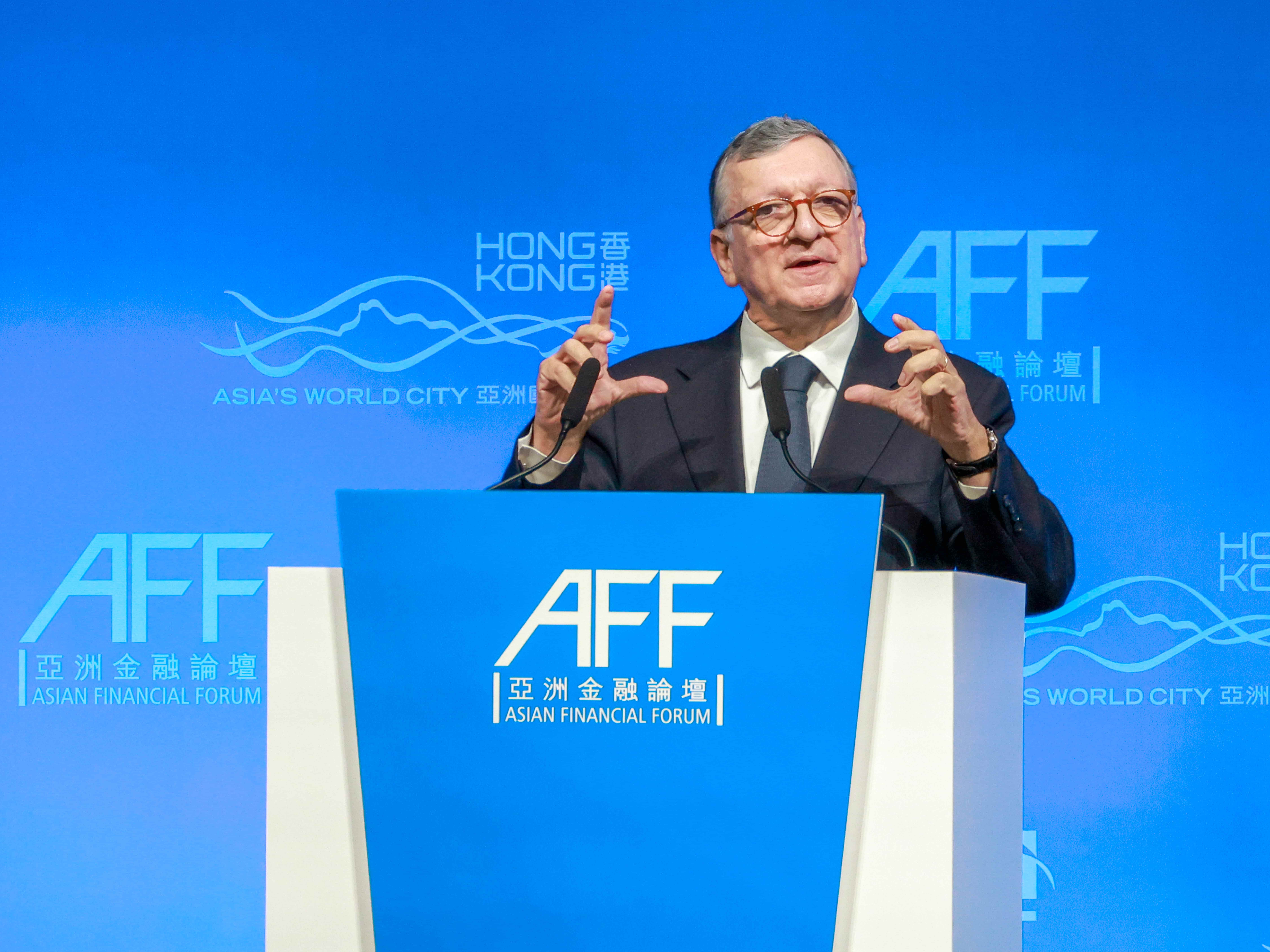 José Manuel Durão Barroso, former president of European Commission, delivers a keynote address on global trade realignments, capital flows, and Hong Kong’s role in regional collaboration at the Keynote Luncheon at Hong Kong Convention and Exhibition Centre on Jan 26, 2026 during the Asian Financial Forum. (ANDY CHONG / CHINA DAILY)