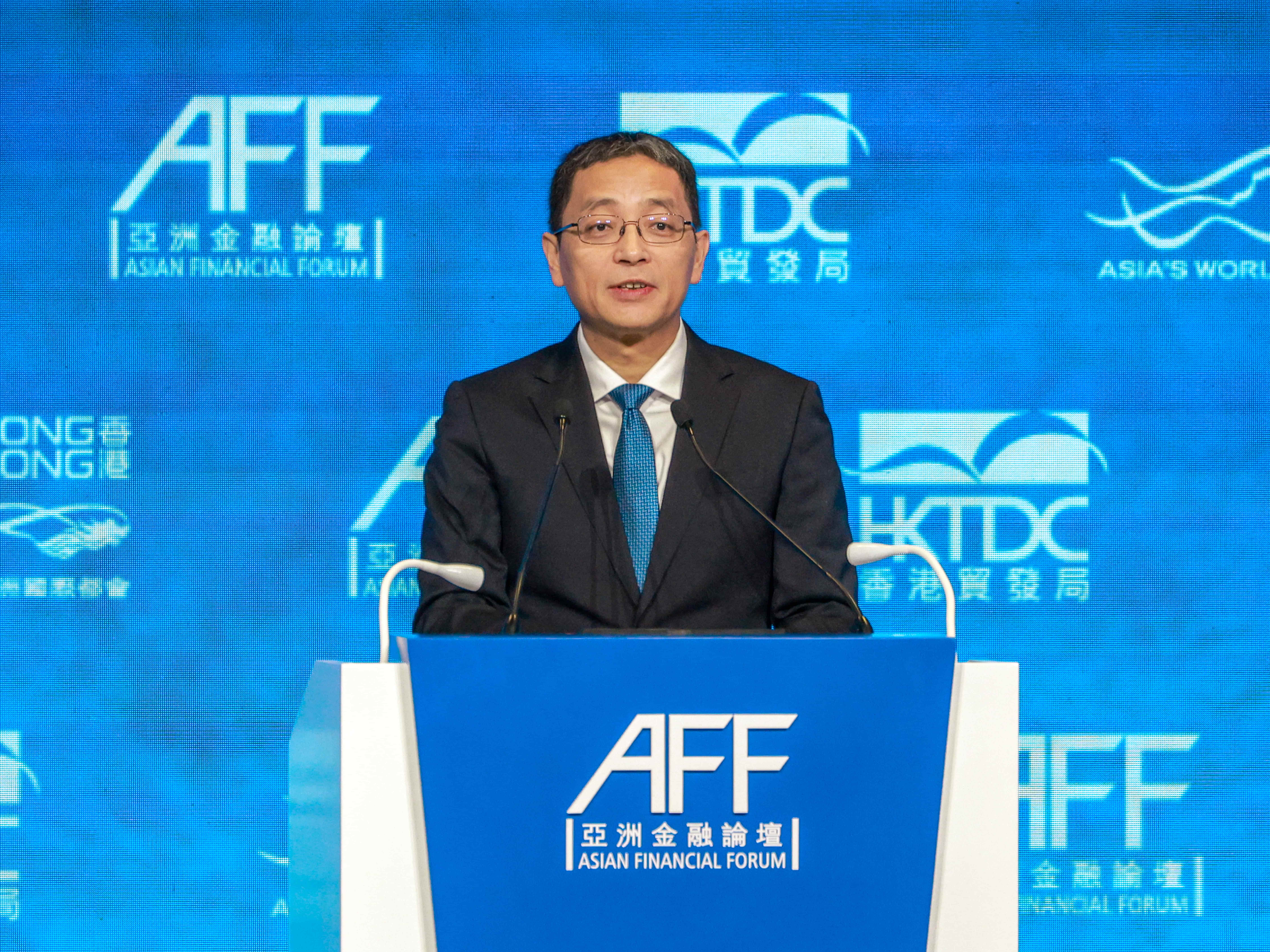 President of Management Committee of China International Capital Corporation Limited Wang Shuguang, delivers a speech at the Keynote Luncheon at the Asian Financial Forum 2026 in Hong Kong on Jan 26, 2026. (ANDY CHONG / CHINA DAILY)