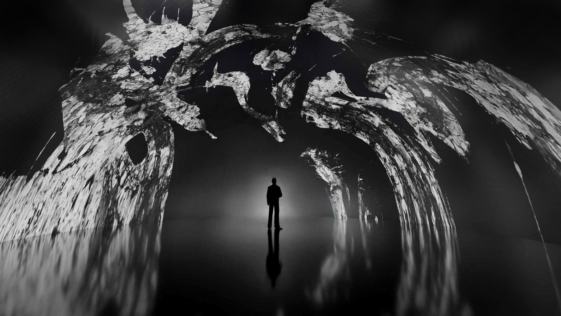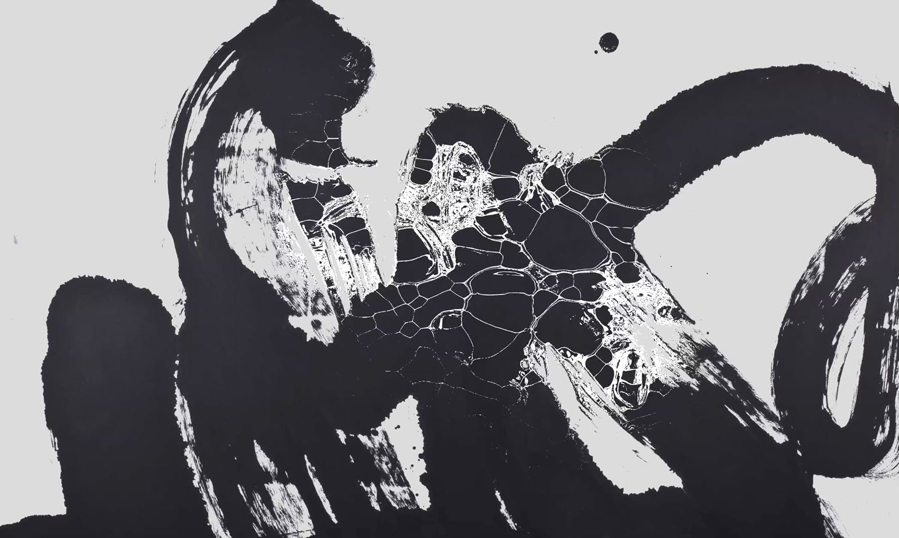 The idea informs his digital video and interactive installation series, Dao Gives Birth to One, begun in 2008. Playing across multiple screens, the video opens with the character of yi appearing against a white background, its texture similar to the kind of paper used in Chinese calligraphy and painting. Responding to input from viewers, the piece generates the Chinese character for “two”, followed by “three”. Eventually, 10,000 Chinese characters fill the screens.
