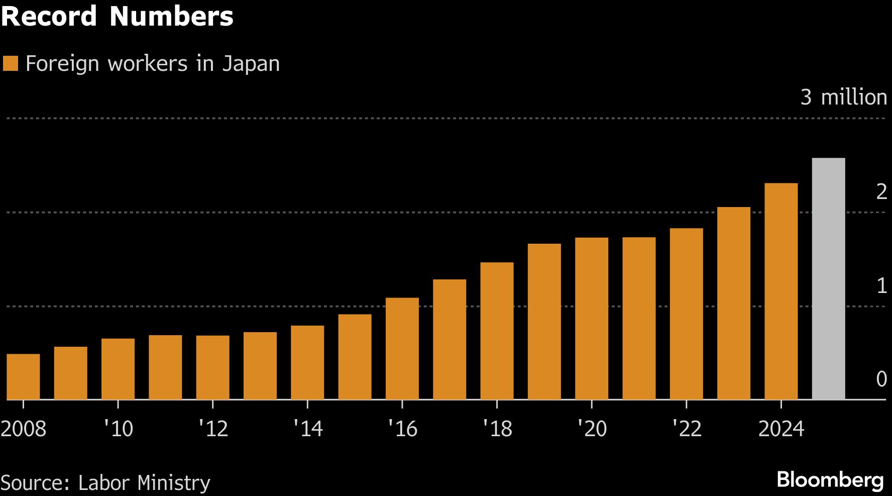 Japan’s population of foreign workers hit a fresh record last year, figures that will likely feed into the election debate on the reliance on immigrant workers and simmering angst among the rising number of voters supporting the far-right Sanseito party.