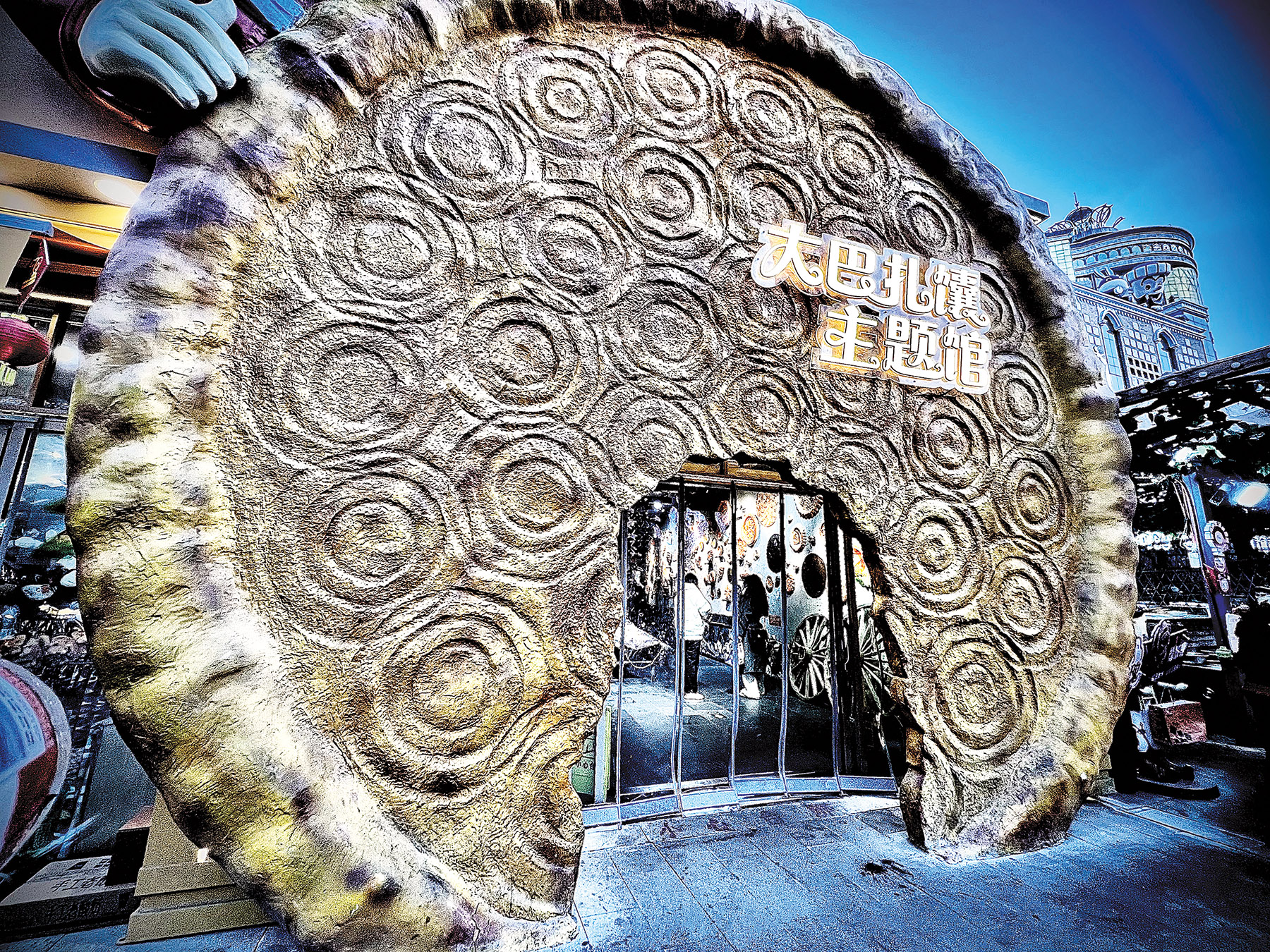 At Urumqi's Grand Bazaar, you don't just get a taste of Xinjiang culture — you can step into it, when you walk through the doorway framed by a bite taken out of the Naan House's bread-shaped facade.