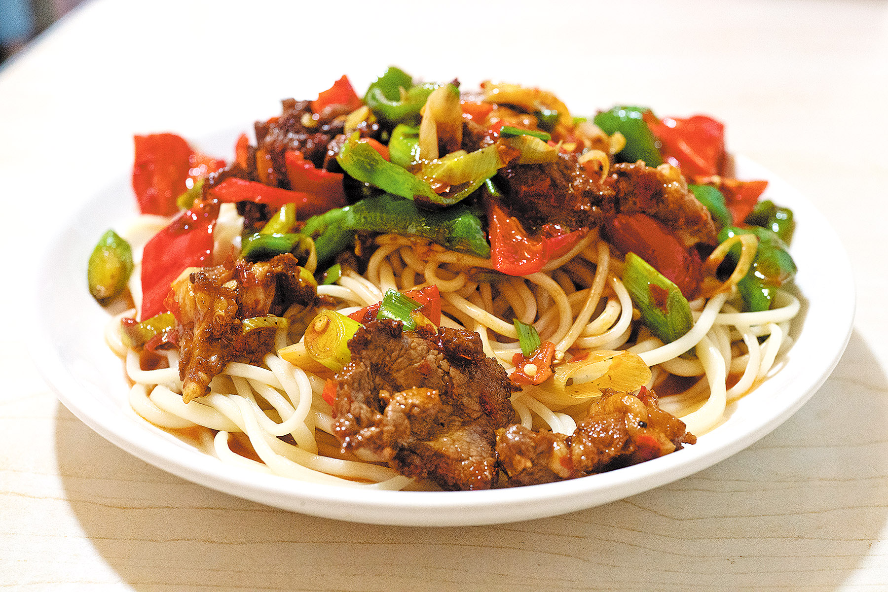 • Lamb noodles: Hand-pulled noodles with stir-fried lamb, veggies and savory sauce.