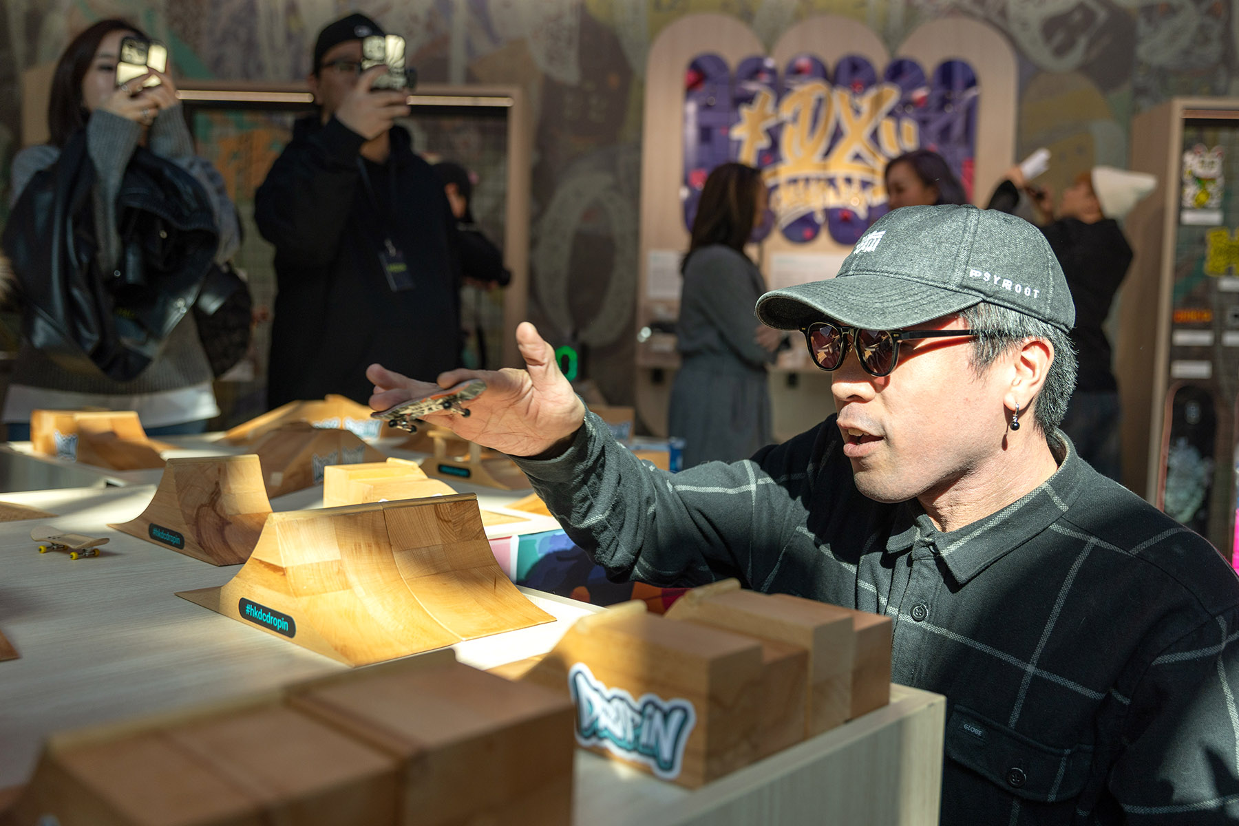 The Hong Kong Design Centre is hosting an exhibition dedicated to skateboarding culture. Its title, Drop In — Drop Into the Vibe of Skateboarding Culture, is meant to be an invitation to visitors to immerse themselves into the subject, drawing an analogy with the way skateboarders begin their run by plunging into the bowl, making use of the gravitational pull in order to pick up speed.