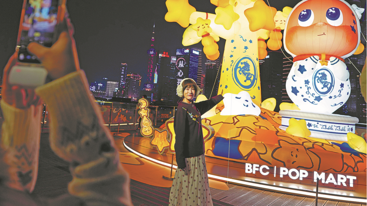 In collaboration with Pop Mart, on Feb 1 the Bund Finance Center launched a Chinese New Year Garden Fair. It is set to run until March 15, and will see the main palace lantern carousel installation, decorated with Pop Mart's 12 classic IPs, set up at the center's North Plaza, accompanied by a smaller Labubu lantern installation.