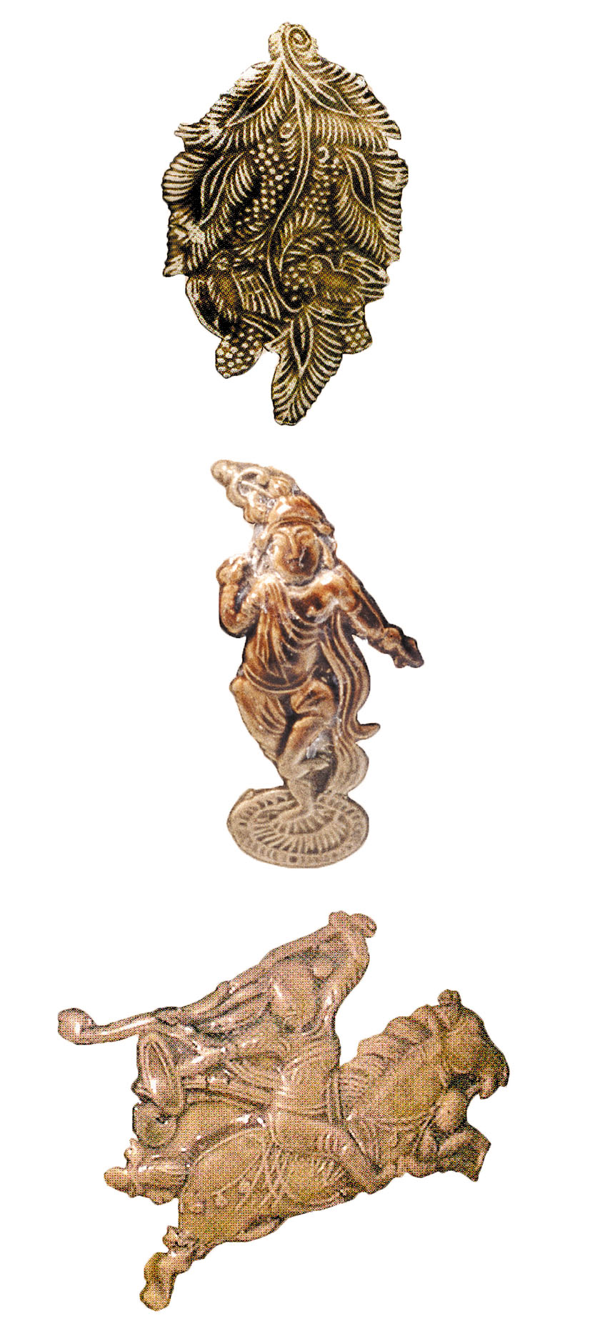 He indicates a globular pot adorned with applique palm-leaf medallions. "These are yezao wen (date palm motifs), native to the Middle East. This vessel was probably made for a Western Asian buyer," he says.