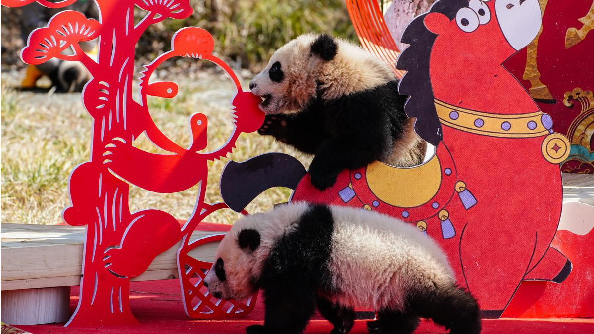 Thirty giant panda cubs born in 2025 at two leading panda breeding institutions in Sichuan province made their collective public debut on Wednesday to send Spring Festival greetings to the nation.