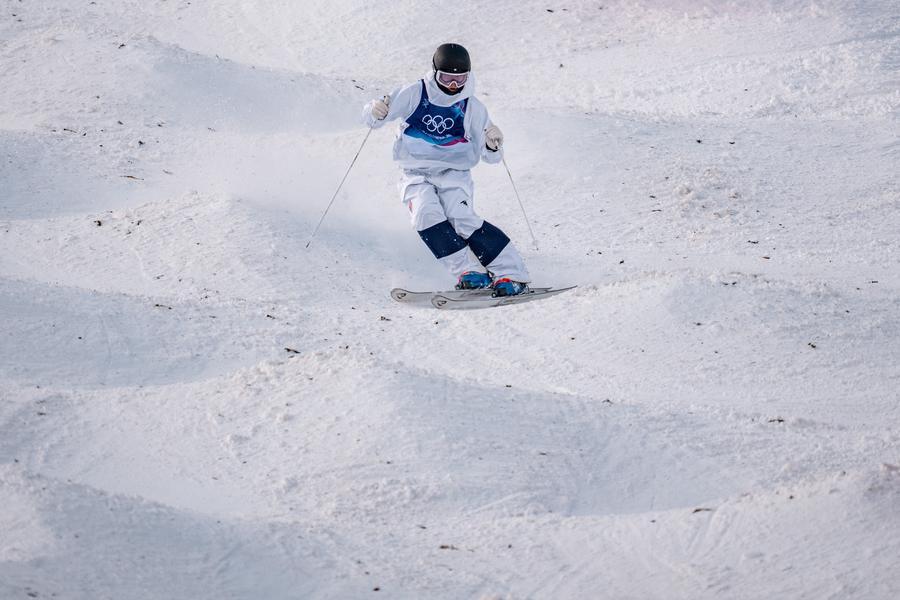 Elizabeth Lemley of the United States in action during the freestyle skiing women's moguls final at the Milan-Cortina 2026 Olympic Winter Games in Livigno, Italy, Feb 11, 2026. (PHOTO / XINHUA)