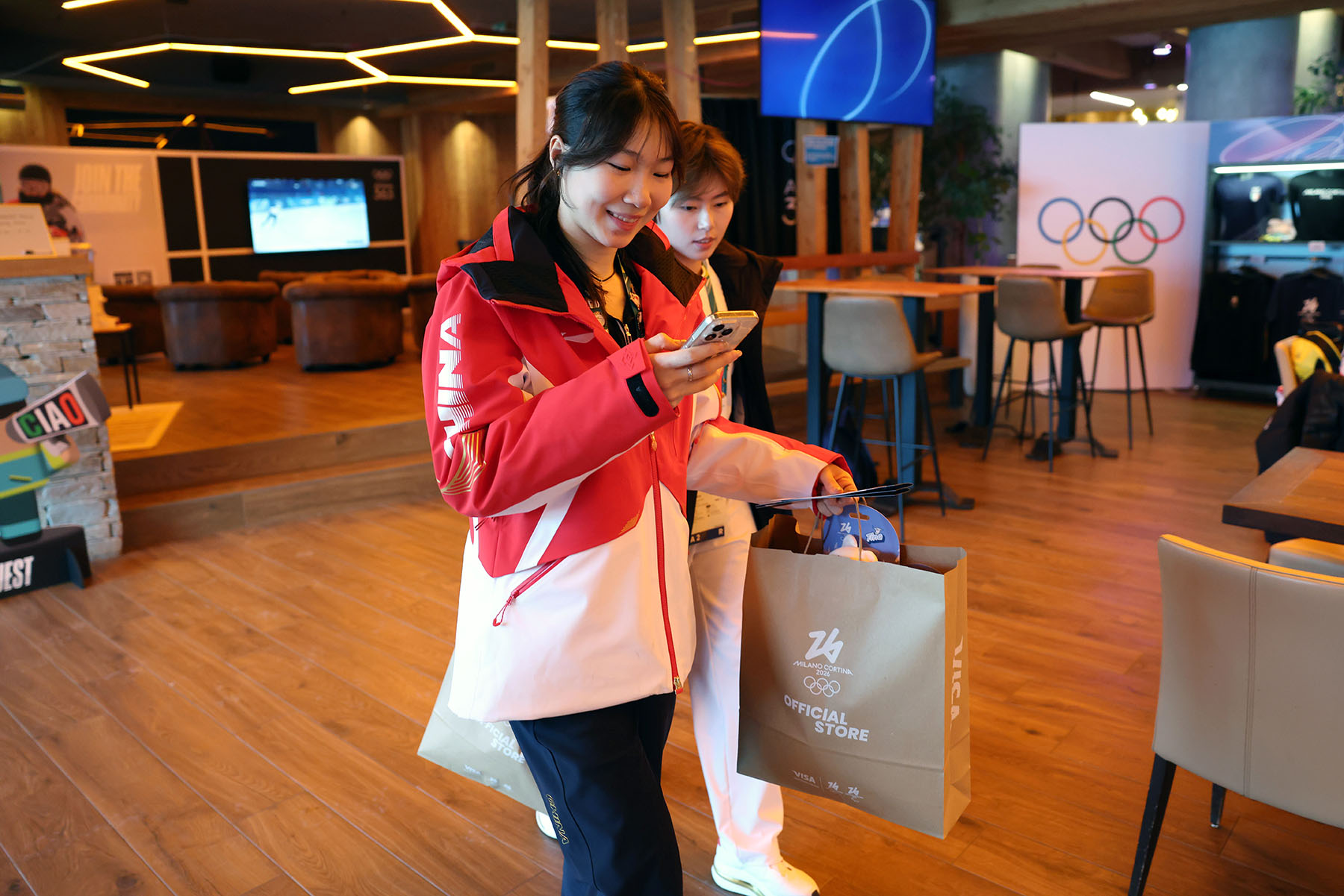 Chinese athletes shop for souvenirs at the athletes' village in Livigno. (WEI XIAOHAO / CHINA DAILY)