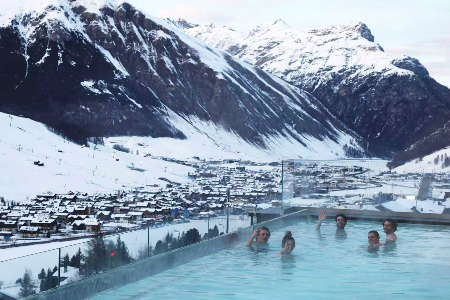 Competitors from various countries enjoy a hot spring at the athletes' village in Livigno, Italy, on Feb 8, 2026. (WEI XIAOHAO / CHINA DAILY)