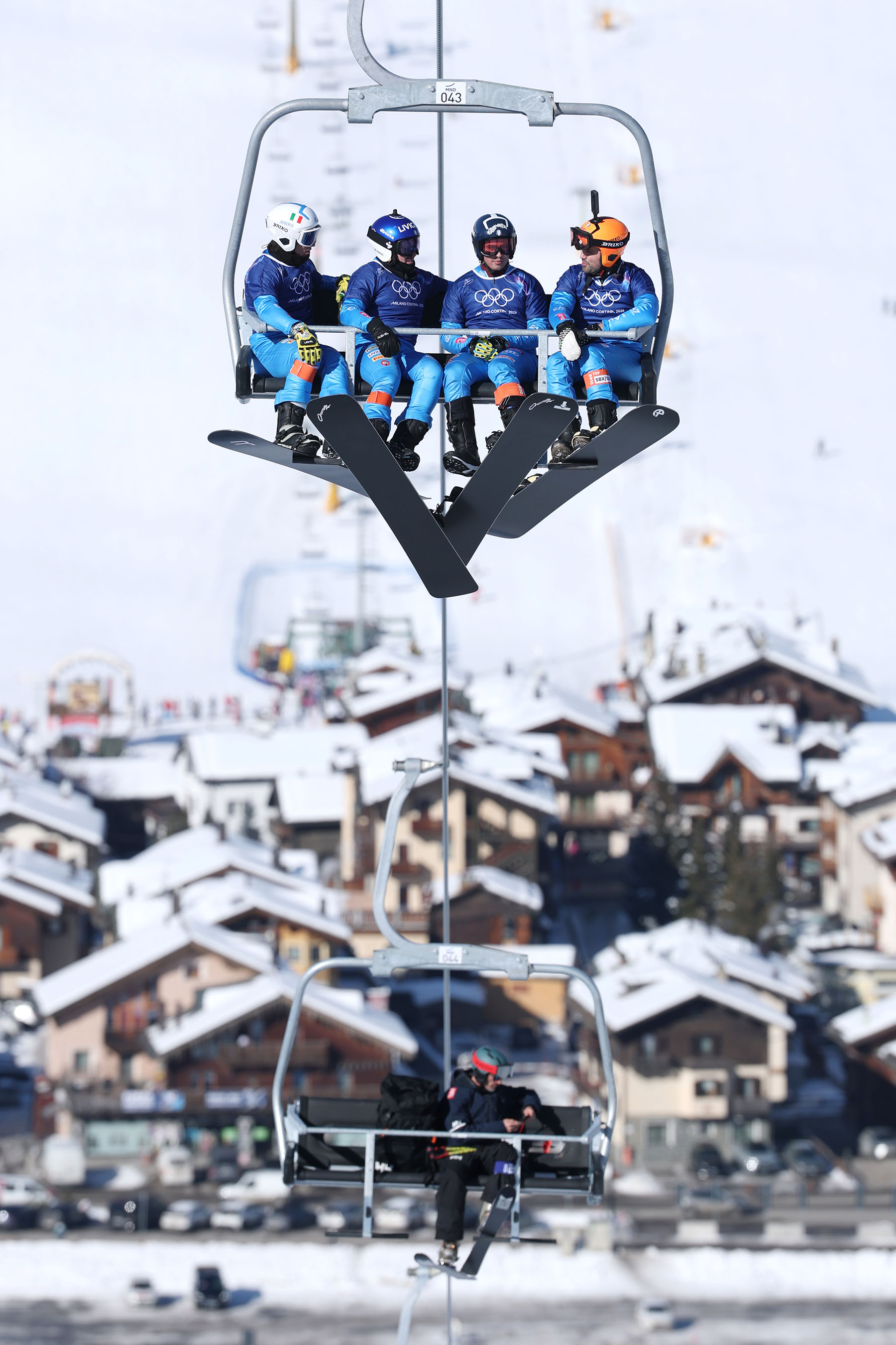 Athletes take a cable car up the mountain for warm-up preparations at the Mottolino Fun Mountain resort in Livigno on Feb 9, 2026. (WEI XIAOHAO / CHINA DAILY)