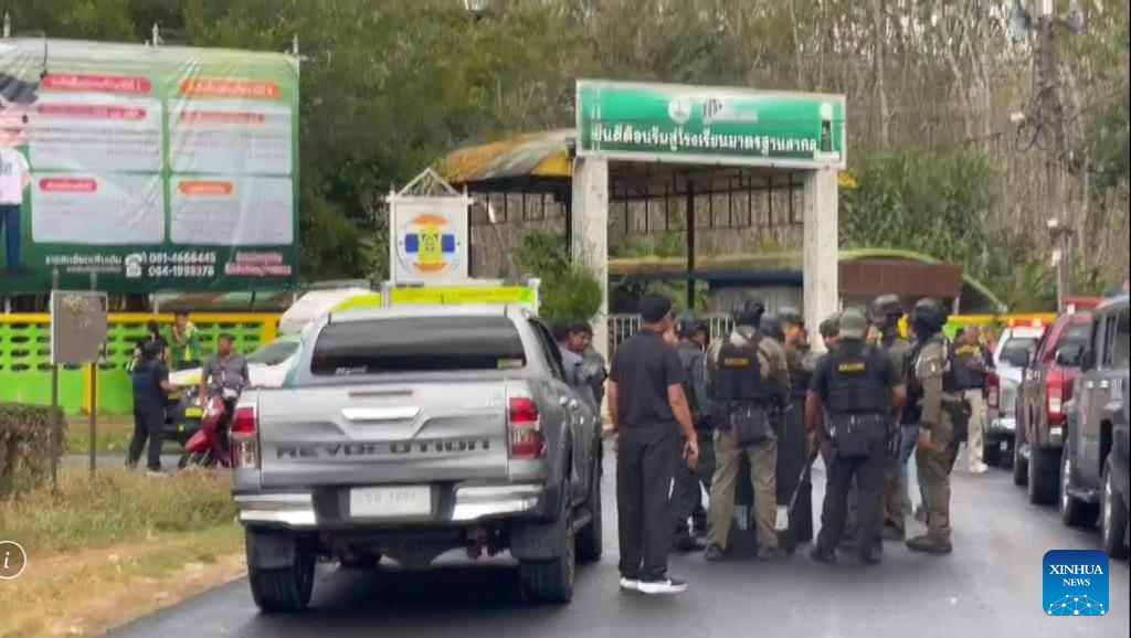 This photo posted by the public relations department of Songkhla province on social media shows emergency personnel at a school where a shooting took place in the Hat Yai district of Songkhla province, Thailand, Feb 11, 2026. (PHOTO / XINHUA)