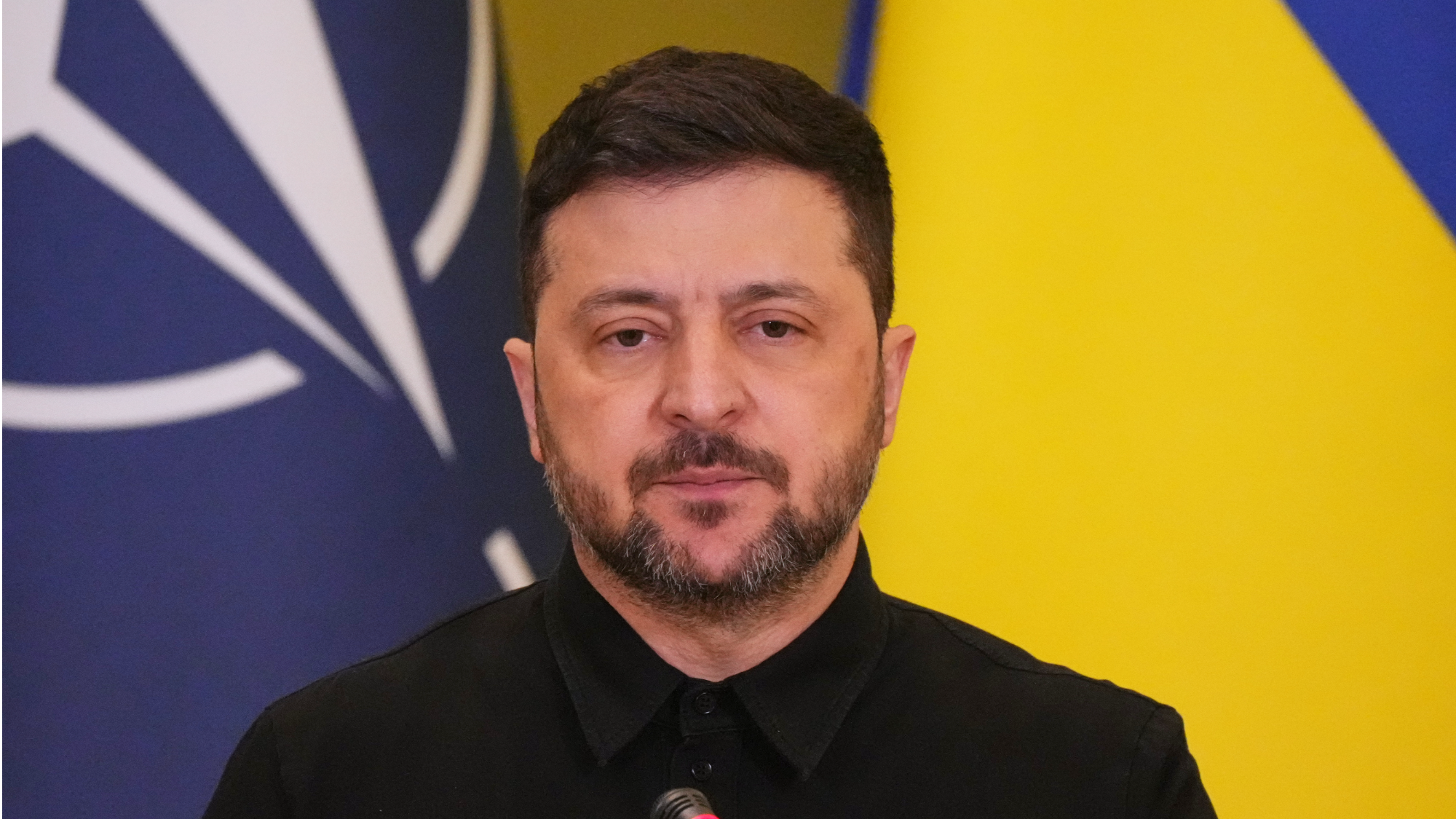 Ukrainian President Volodymyr Zelensky attends a joint news conference with NATO Secretary General Mark Rutte (not in the photograph) in Kyiv, Ukraine, Feb 3, 2026. (PHOTO / AP)