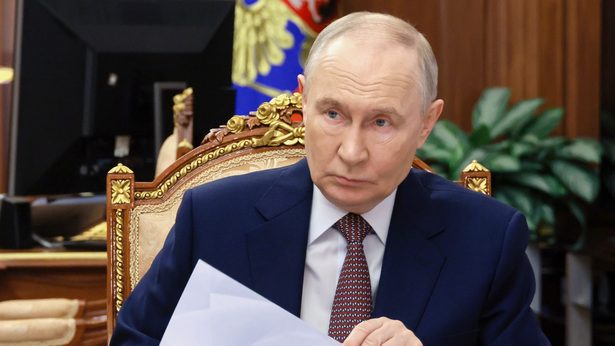 Russian President Vladimir Putin listens to the head of the North Ossetia-Alania Republic of Russia Sergei Menyailo (not in the photograph), during their meeting at the Kremlin, in Moscow, Feb 11, 2026. (PHOTO / AP)