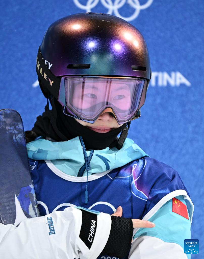 Liu Yishan of China reacts during the qualification of freestyle skiing women's freeski halfpipe at the Milan-Cortina 2026 Olympic Winter Games in Livigno, Italy, Feb 19, 2026. (PHOTO / XINHUA)