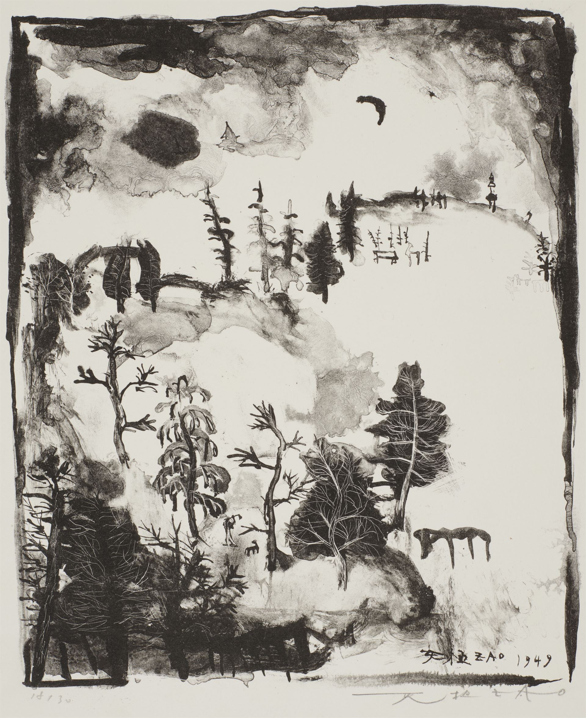 Landscape with Crescent, Zao Wou-ki, 1949, lithograph (PROVIDED TO CHINA DAILY)