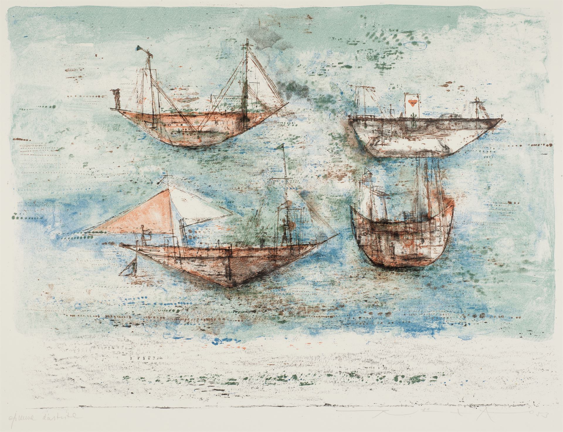 Sailing Ships at Sea, Zao Wou-ki, 1953, lithograph (PROVIDED TO CHINA DAILY)