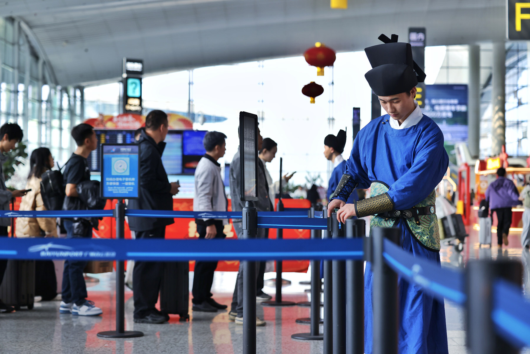 Gu Ziqi, a 20-years-old college student from Nanjing, Jiangsu province, praised the events and festive atmosphere at the airport, highlighting the display of cultural pride.