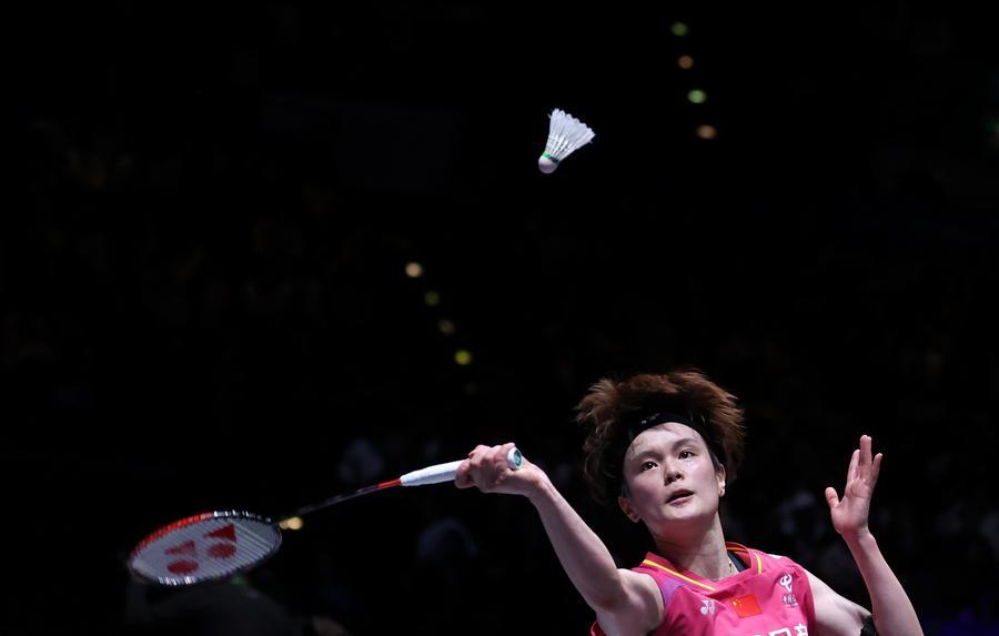 Wang Zhiyi of China in action during the women's singles final against An Se-young of South Korea at the All England Open Badminton Championships 2026 in Birmingham, Britain, March 8, 2026. (PHOTO / XINHUA)