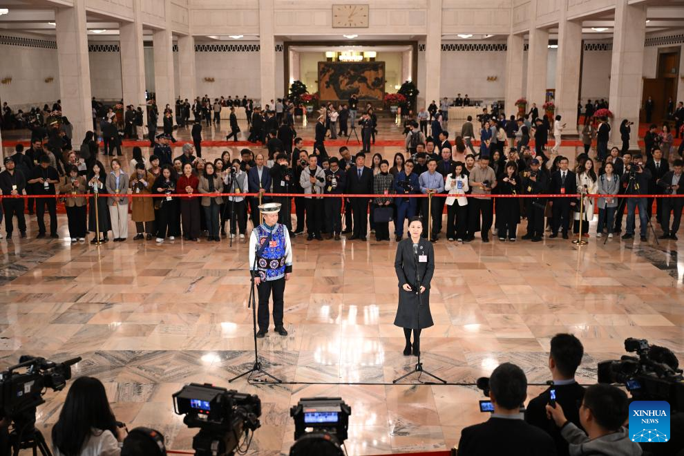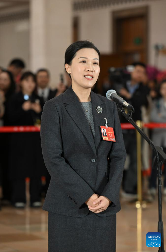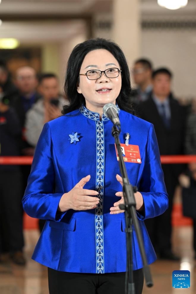 Lyu Yan, a deputy to the 14th National People's Congress (NPC), attends a group interview ahead of the closing meeting of the fourth session of the 14th NPC at the Great Hall of the People in Beijing, capital of China, March 12, 2026. (PHOTO / XINHUA)