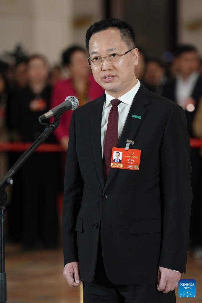 Li Gang, a deputy to the 14th National People's Congress (NPC), attends a group interview ahead of the closing meeting of the fourth session of the 14th NPC at the Great Hall of the People in Beijing, capital of China, March 12, 2026. (PHOTO / XINHUA)
