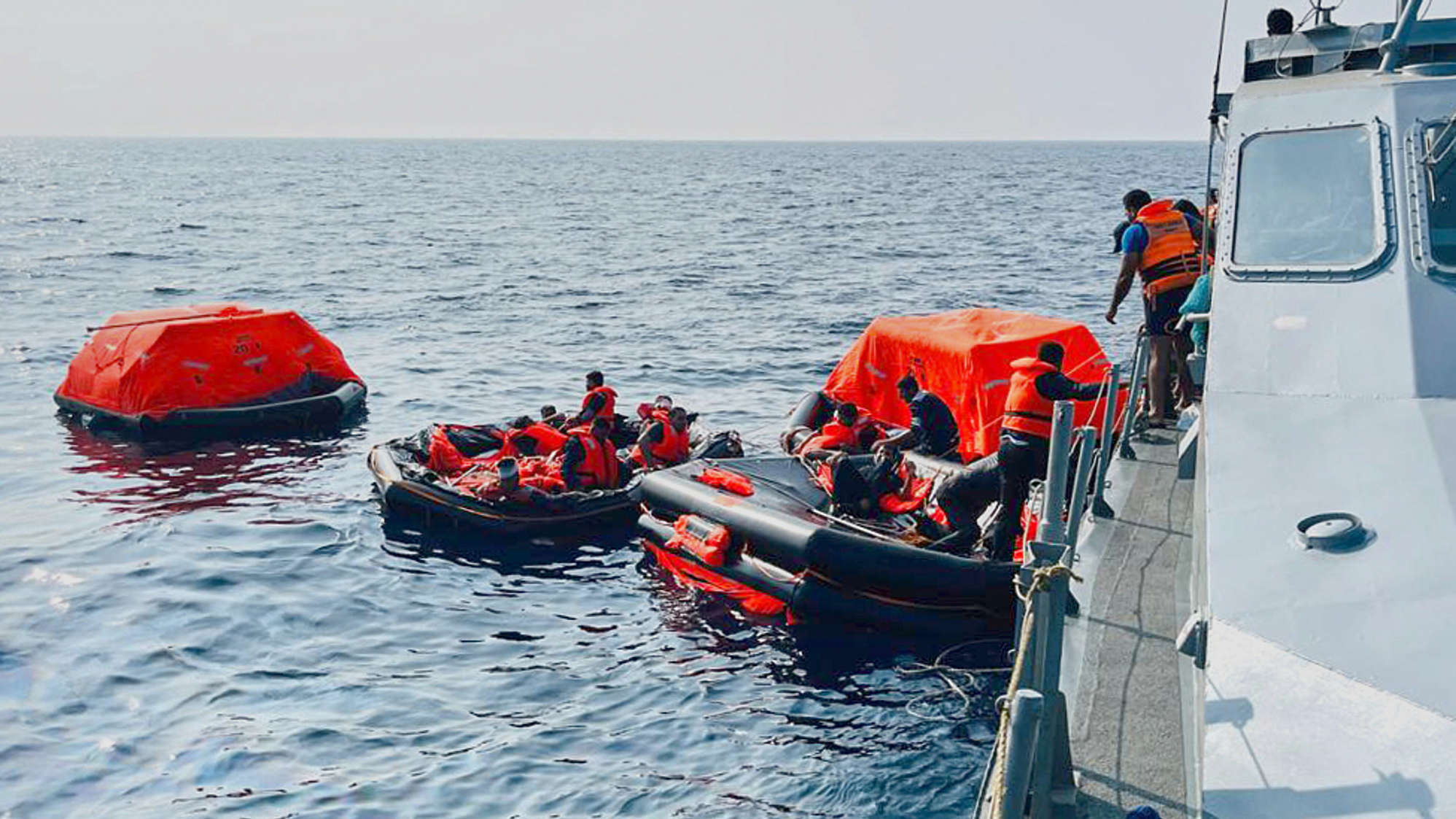In this photo released by Sri Lankan President Media Division, Sri Lankan Navy sailors rescue Iranian sailors from IRIS Dena warship after their ship sank outside Sri Lanka's territorial waters, near Galle, Sri Lanka, March 4, 2026. (PHOTO / AP)