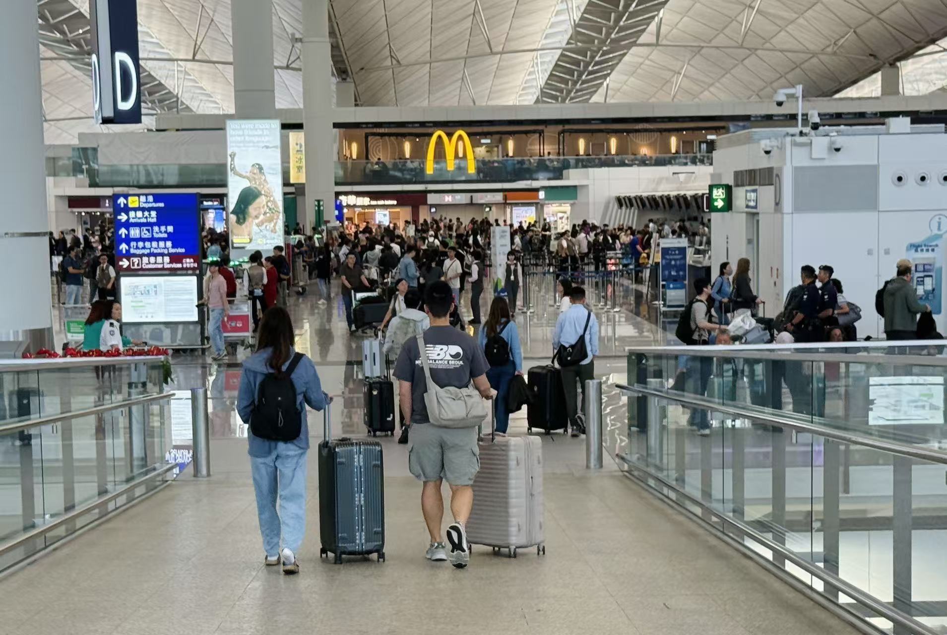 Outgoing travelers arrive at the Hong Kong International Airport to catch their flights on April 3, 2026, when the Easter break got underway. (SHAMIM ASHRAF / CHINA DAILY)Travelers wait to check in at the Hong Kong International Airport on April 3, 2026, when the Easter break got underway. (SHAMIM ASHRAF / CHINA DAILY)Travelers come out of the arrival hall at the Hong Kong International Airport on April 3, 2026, when the Easter break got underway. (SHAMIM ASHRAF / CHINA DAILY)