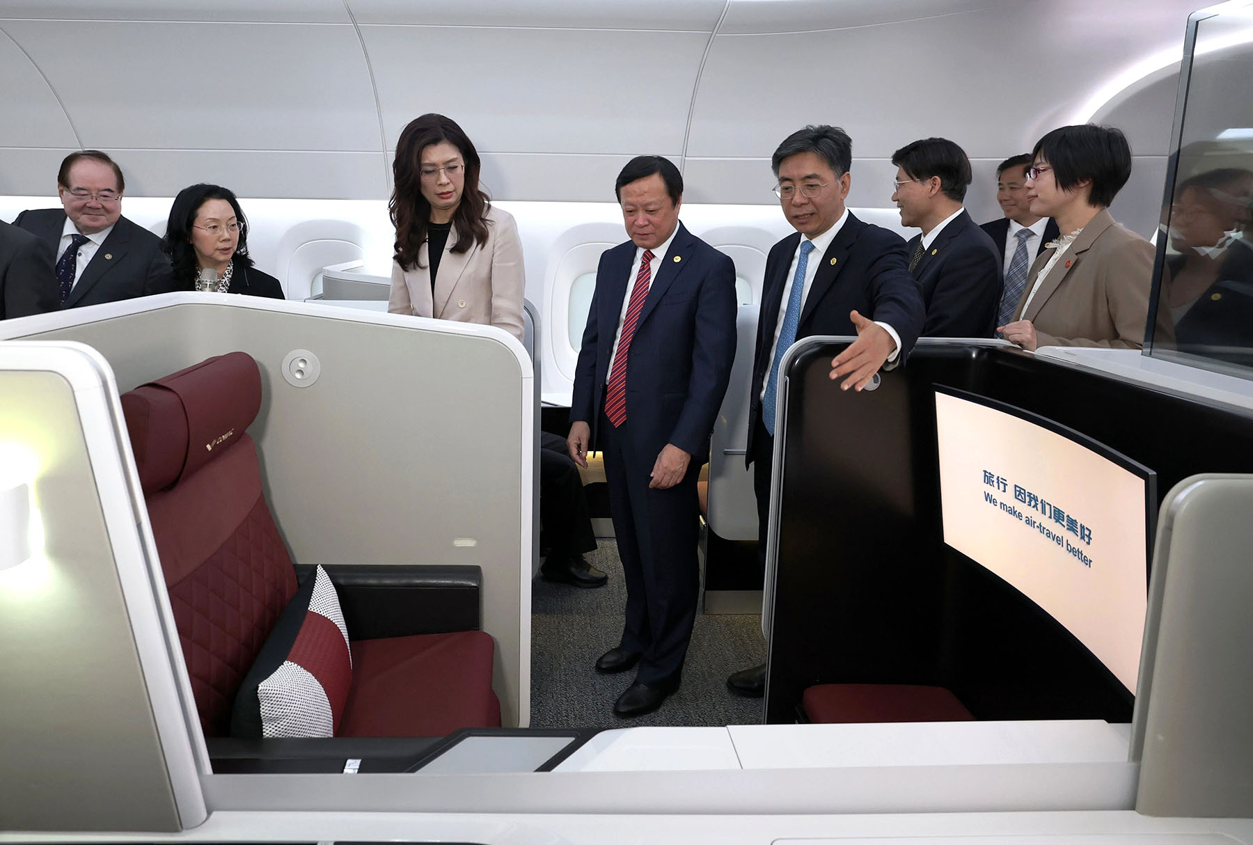 Cheng and the delegation later visited the Shanghai Aircraft Design and Research Institute under the Commercial Aircraft Corporation of China, where she boarded and toured the cabins of display models of the domestically manufactured C909, C919 and C929 aircraft.