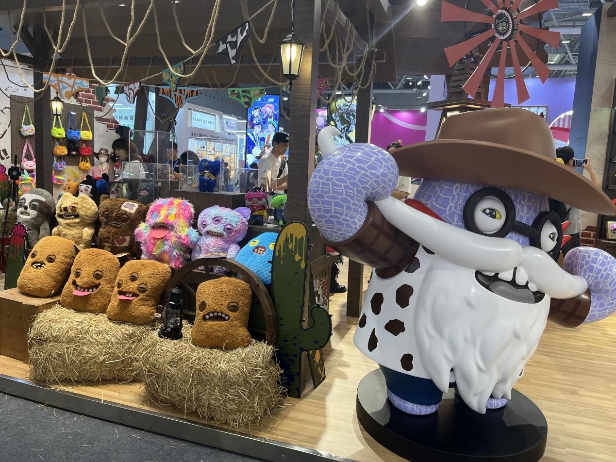 The exhibition booth of British art toy brand Fuggler features funny-ugly monsters. (LI BINGCUN / CHINA DAILY)