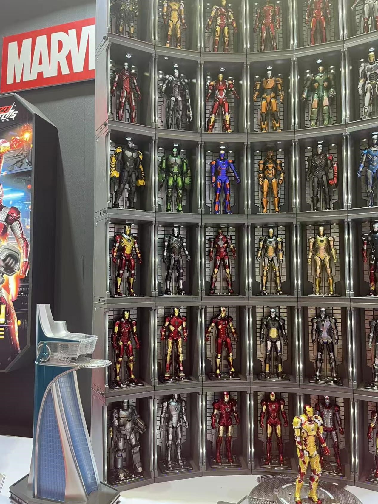 The rows of Iron Man action figures showcase different suits he wore in Marvel firms. (LI BINGCUN / CHINA DAILY)