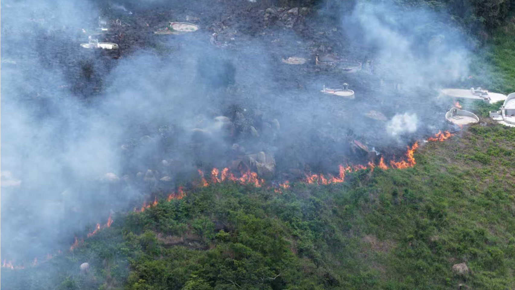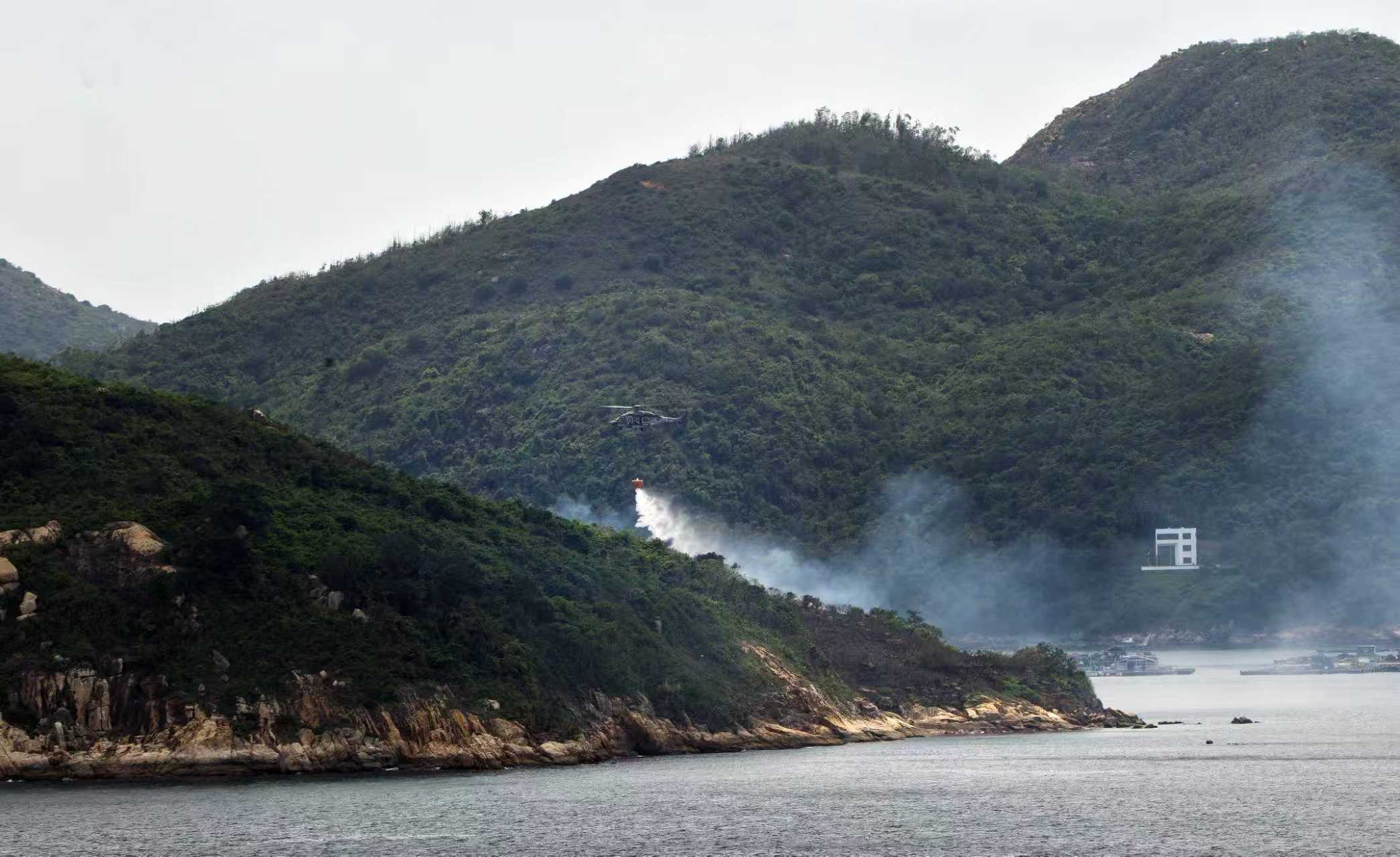 Emergency services were deployed to Luk Chau Island on the East Lamma Channel after a hillside fire broke out on the island on Monday morning.