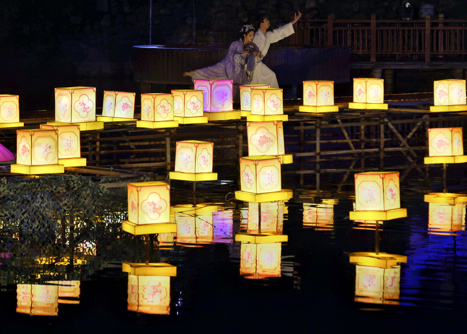 Actors reenact the romantic scene of “Li Bai Admiring the Moon” on April 4, 2026. (PARKER ZHENG / CHINA DAILY)
