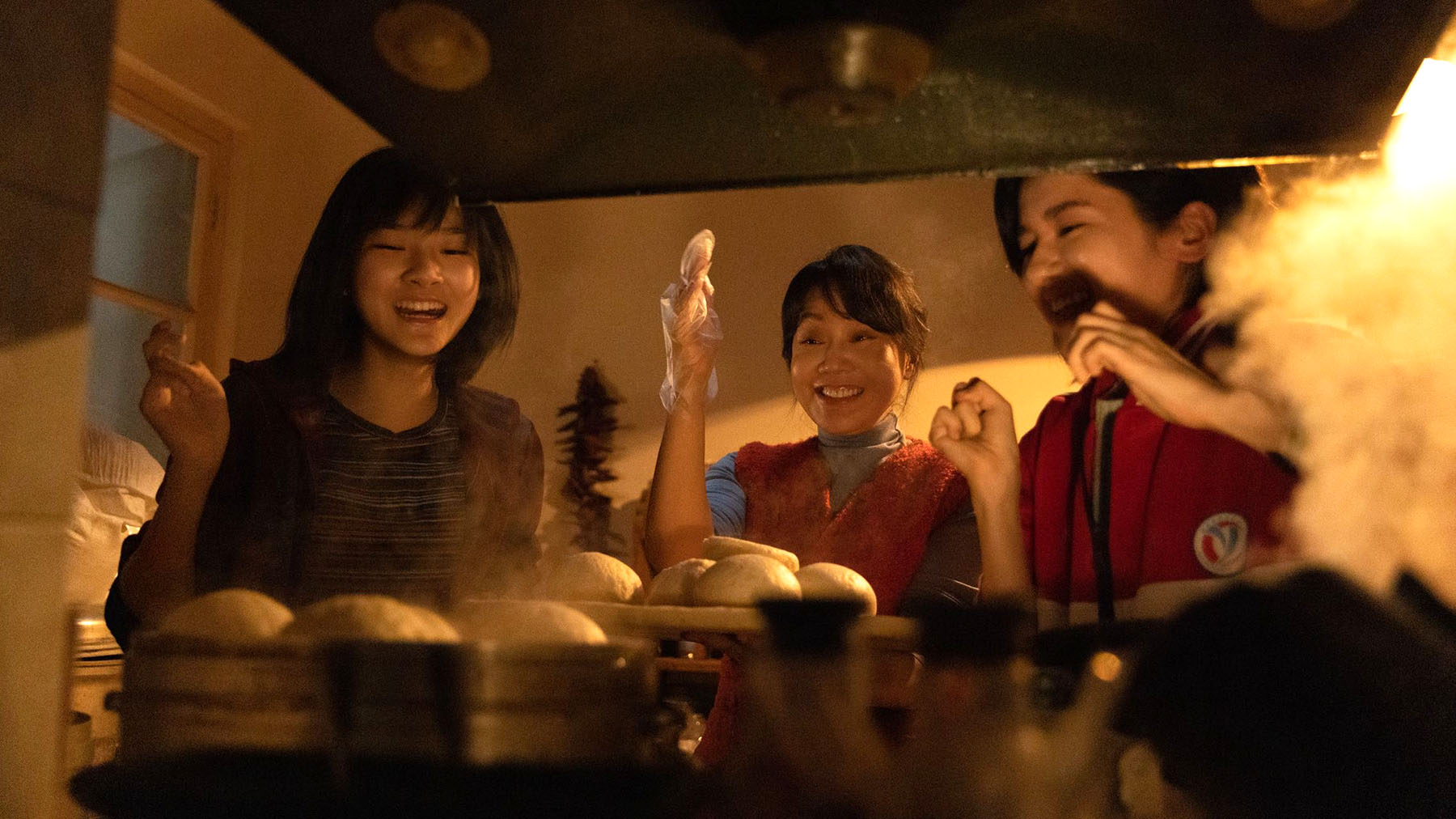 A scene in Vanished Name featuring the two teenage friends Ren Xiaoming (left) and Bai Shu (right) enjoying a rare relaxed moment in their hard life as they cook steamed buns with Ren's mother. (PROVIDED TO CHINA DAILY)