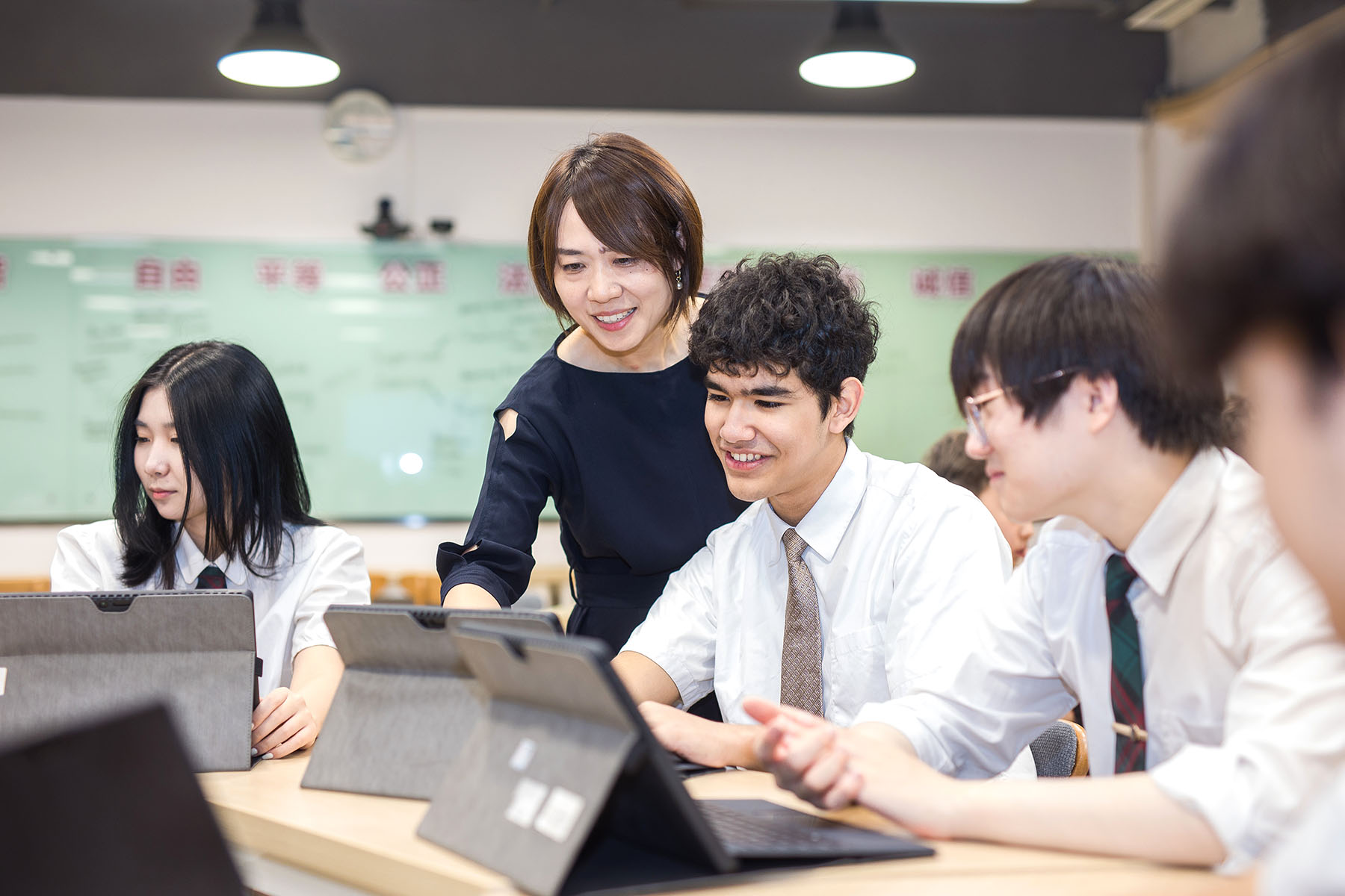 International students attend class in a smart classroom at Yinghua Academy in Tianjin. (PROVIDED TO CHINA DAILY)