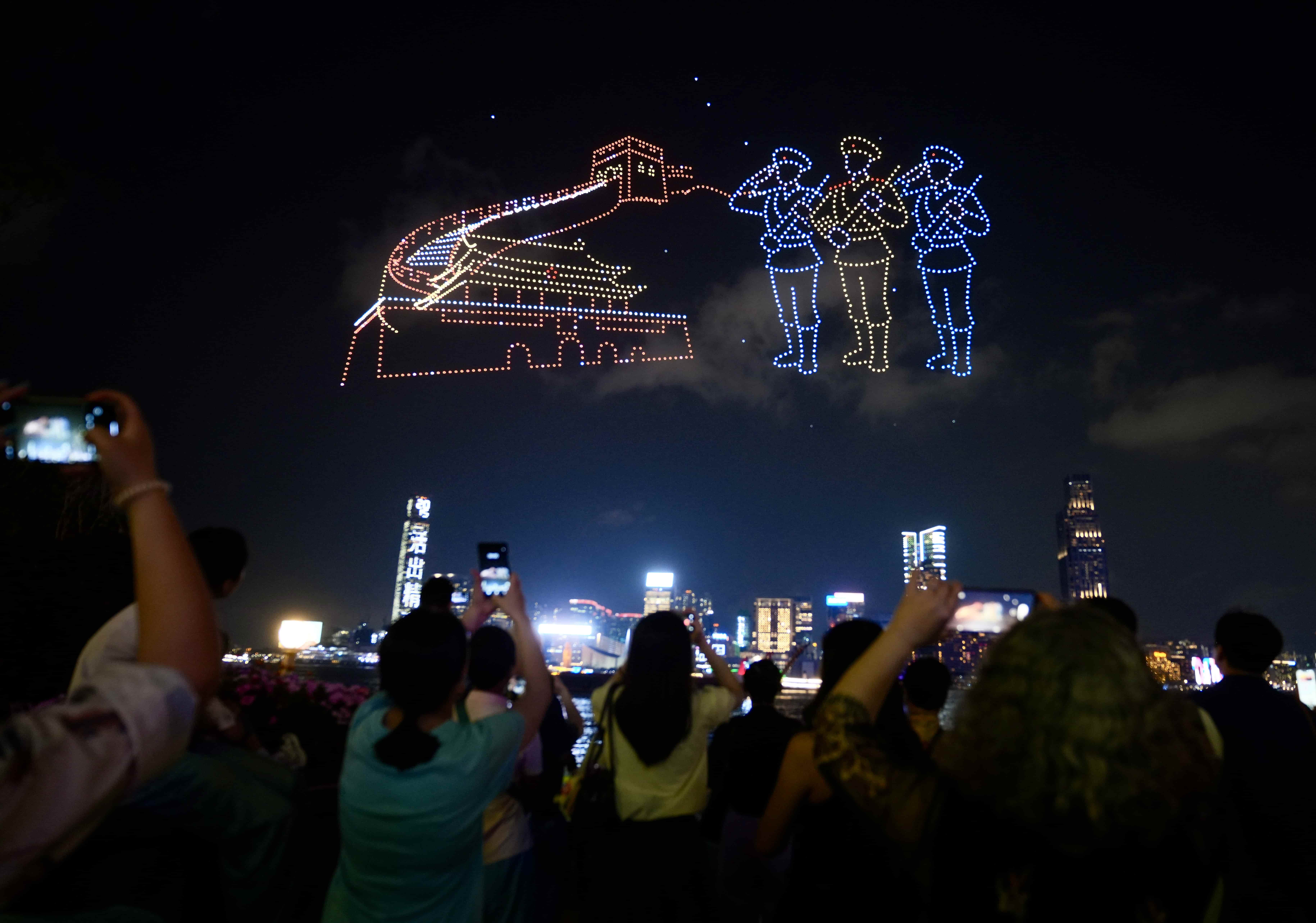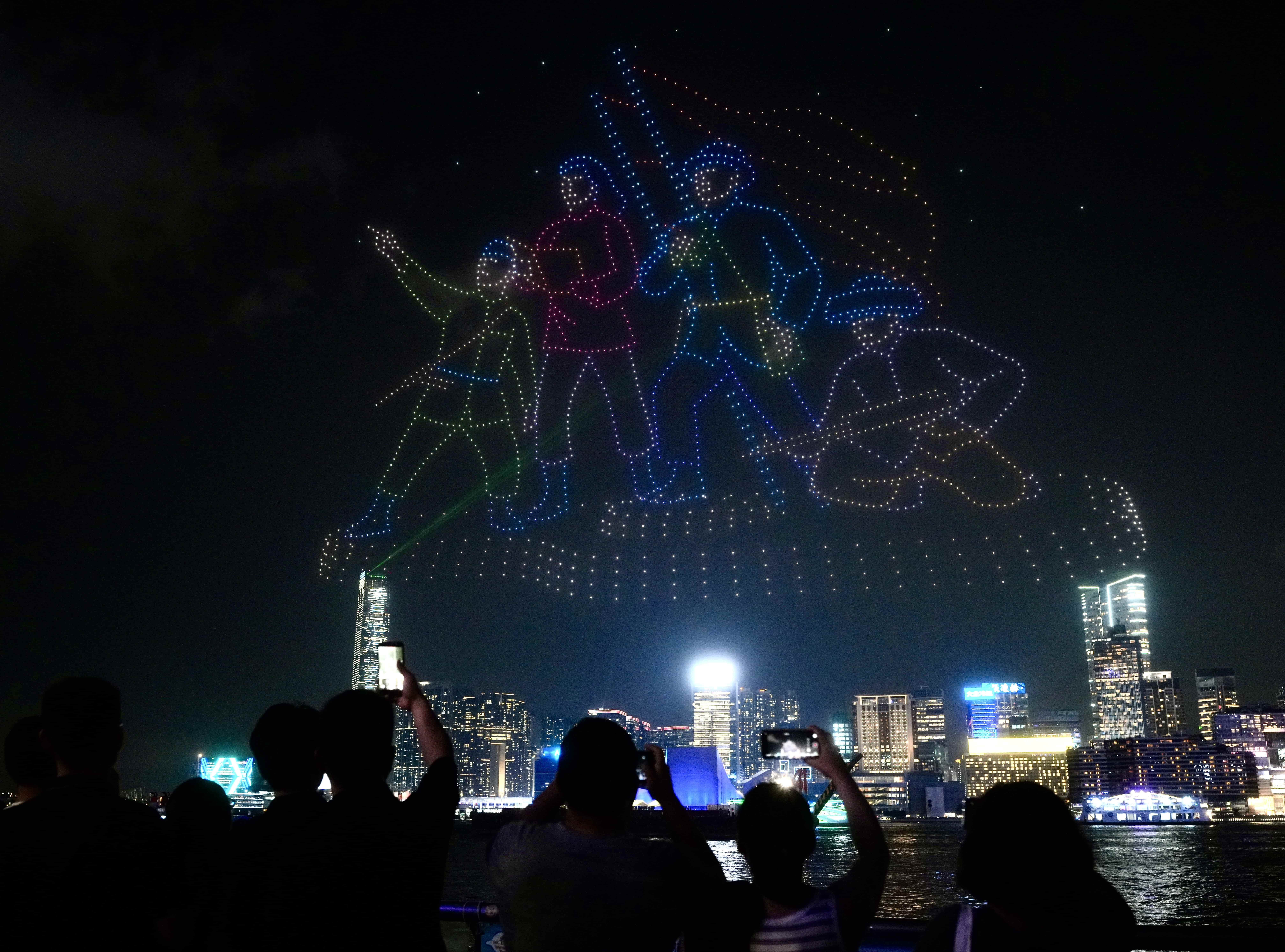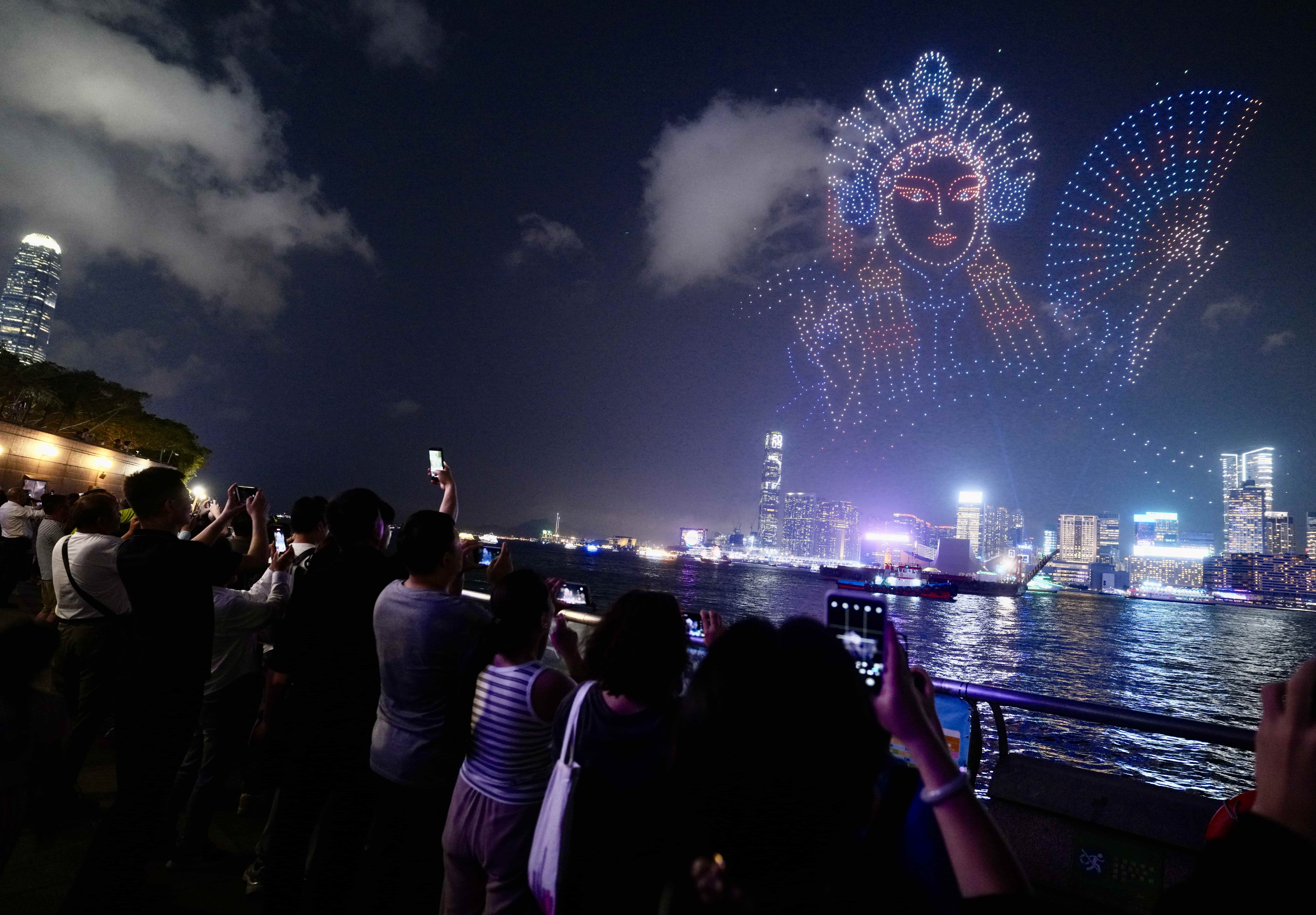 A large-scale drone show was staged near Victoria Harbour on Wednesday.