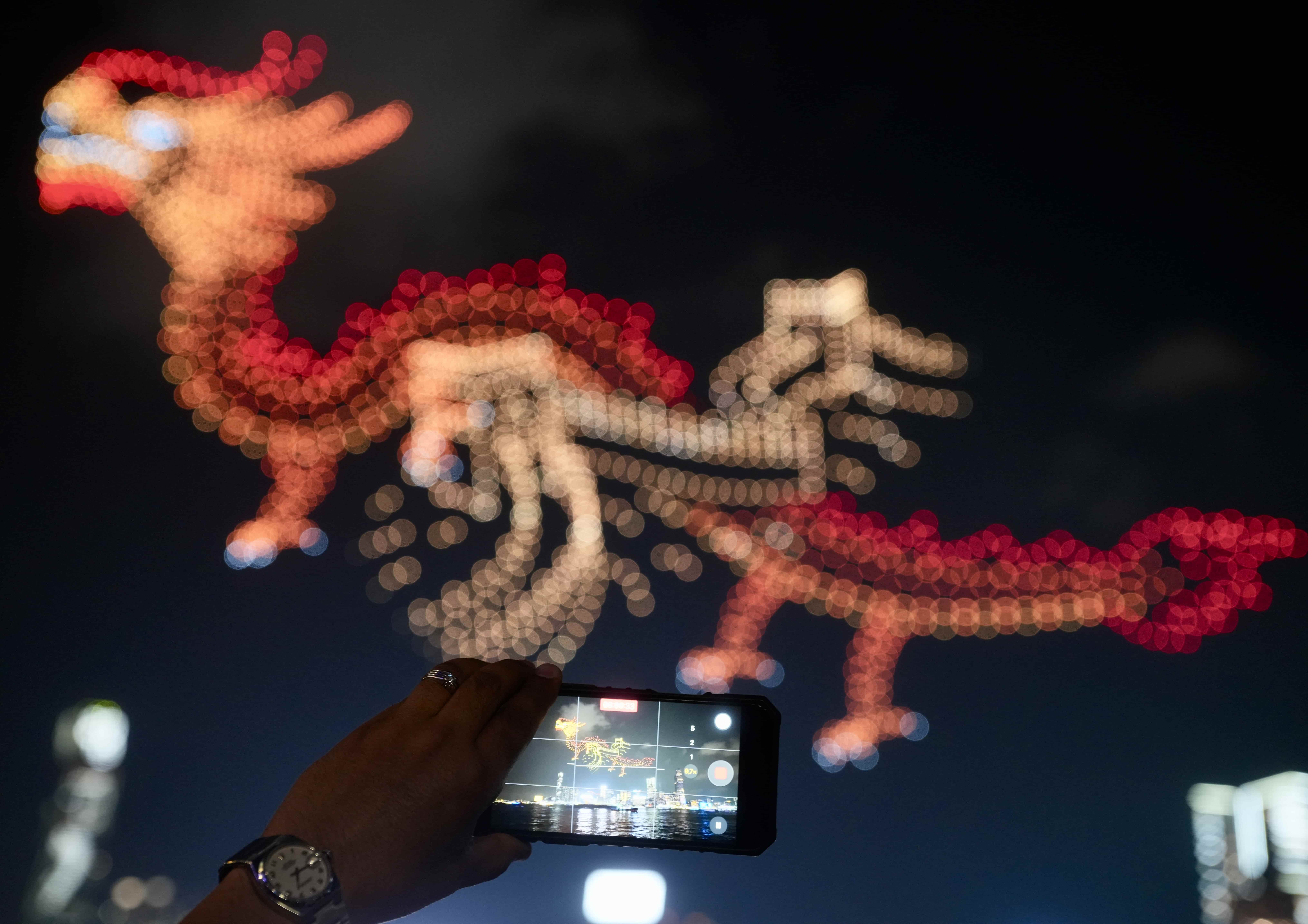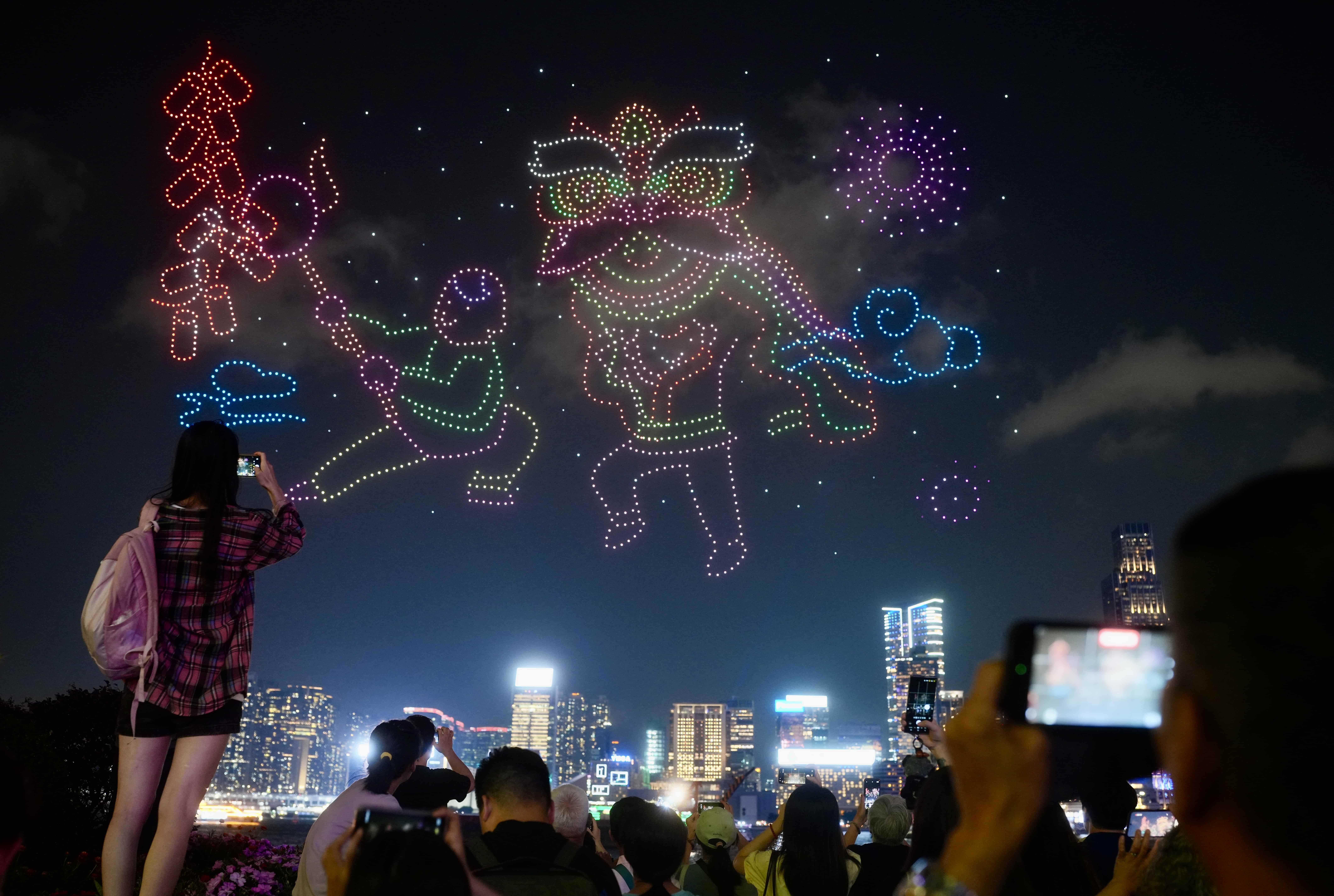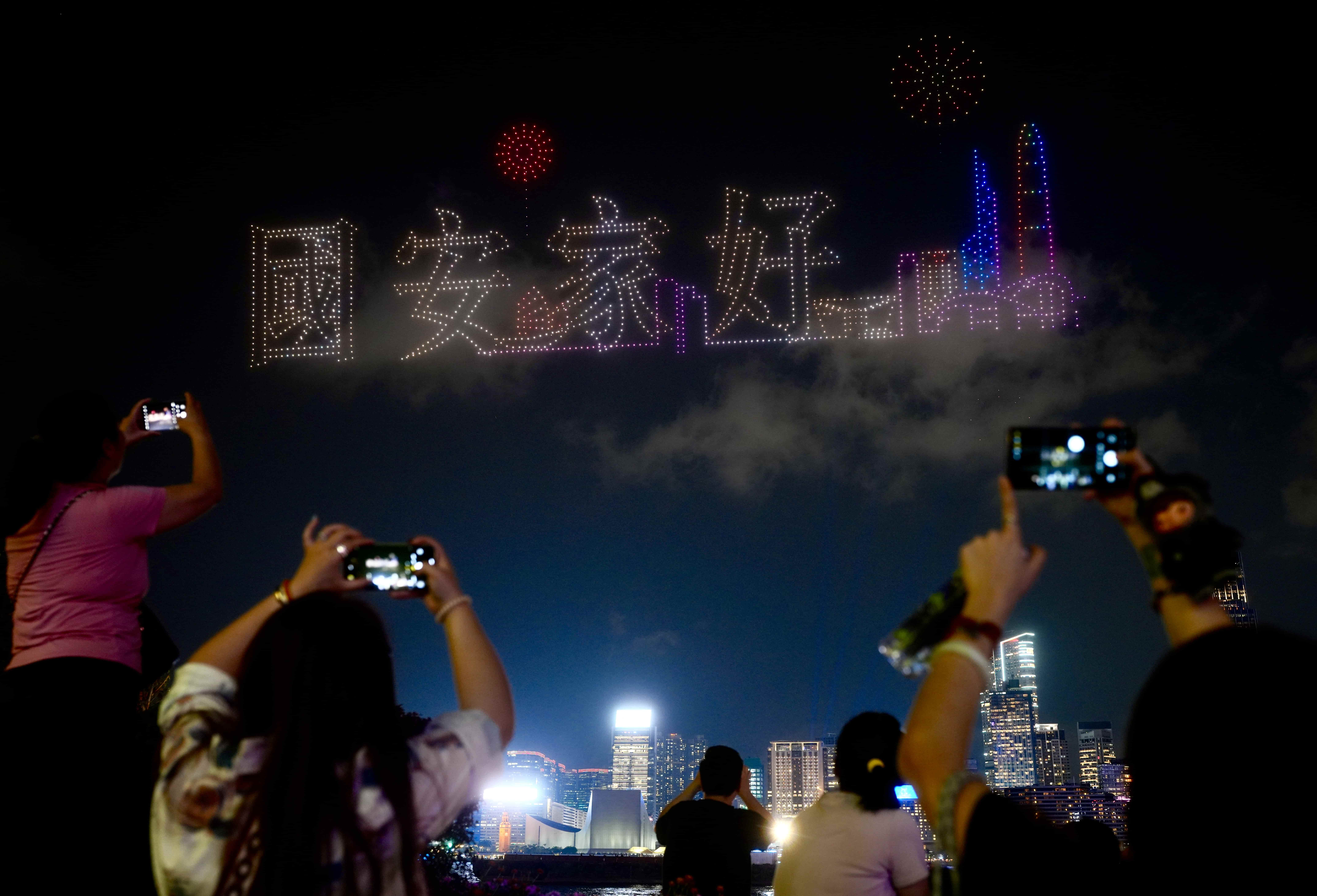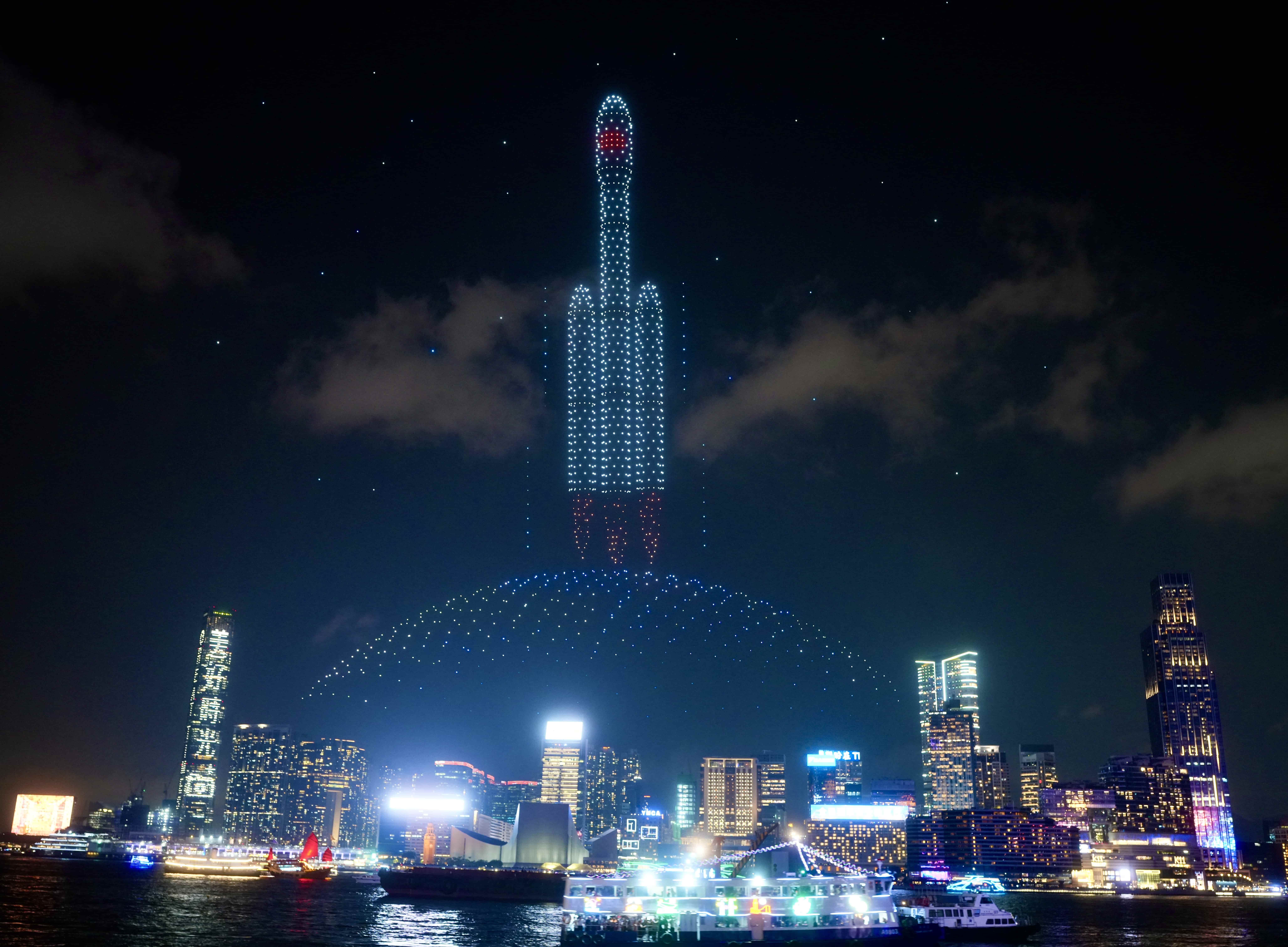 A large-scale drone show was staged near Victoria Harbour on Wednesday.