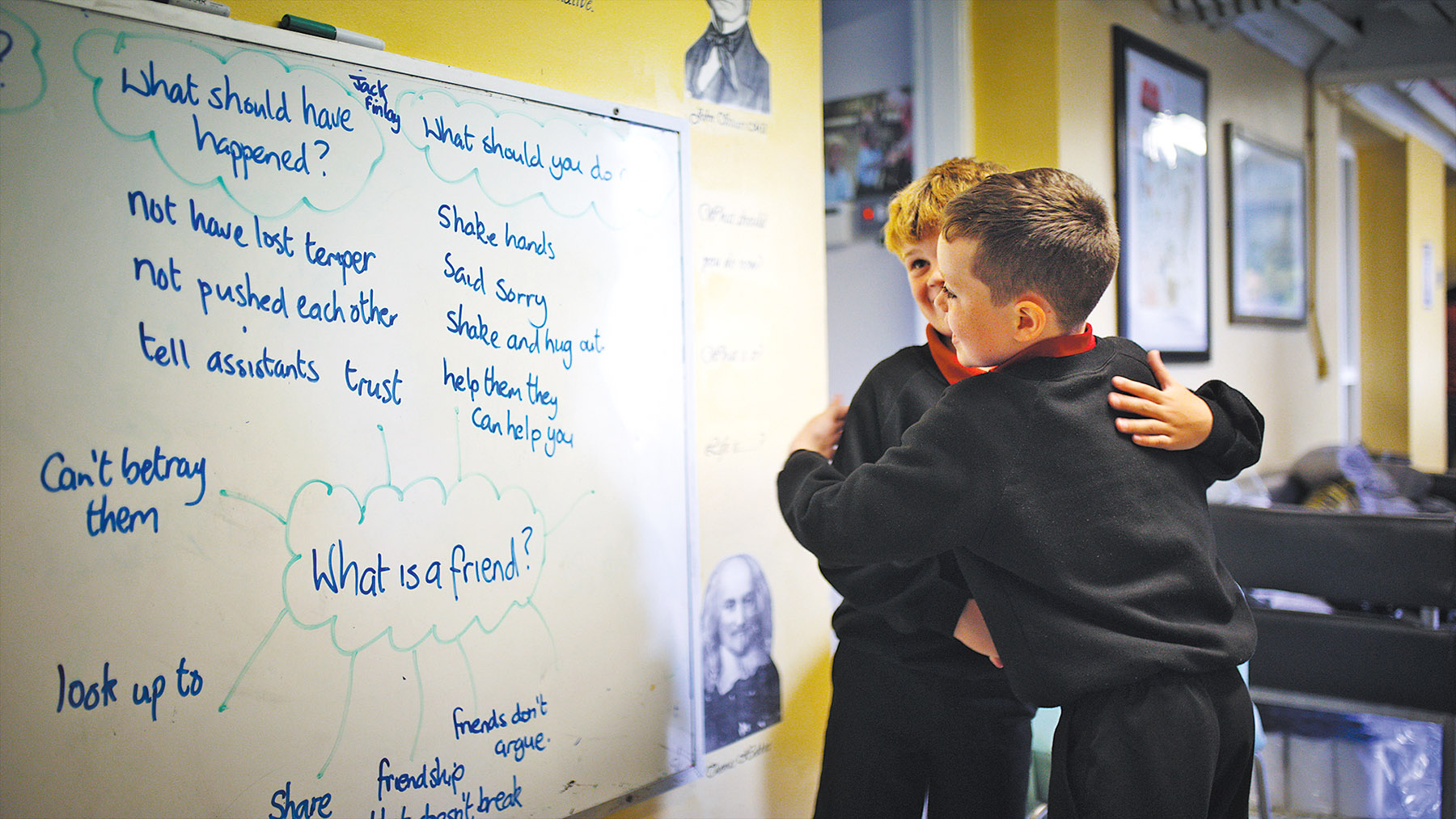 In one sequence, children at a primary school in Nanjing, Jiangsu province, are learning The Analects of Confucius and practicing calligraphy — one of the six arts that formed the basis of education in ancient China. In another, the head of a primary school in Northern Ireland uses Socrates' philosophical ideas to help boys cope with stress and resolve disputes.
