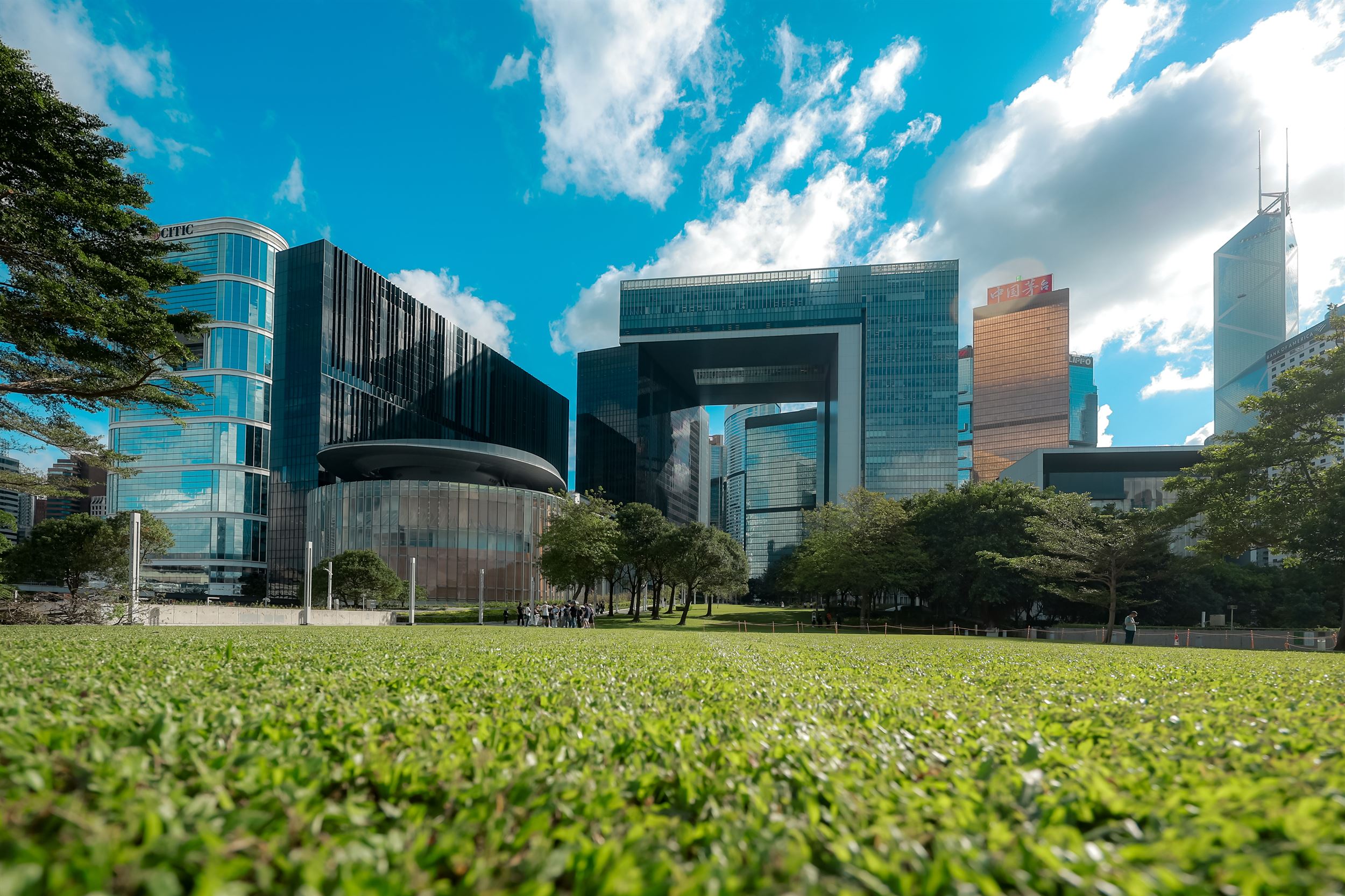 The Central Government Complex of the Hong Kong Special Administrative Region stands against the blue sky in Central, Hong Kong on Oct 13, 2025. (ANDY CHONG / HONG KONG)