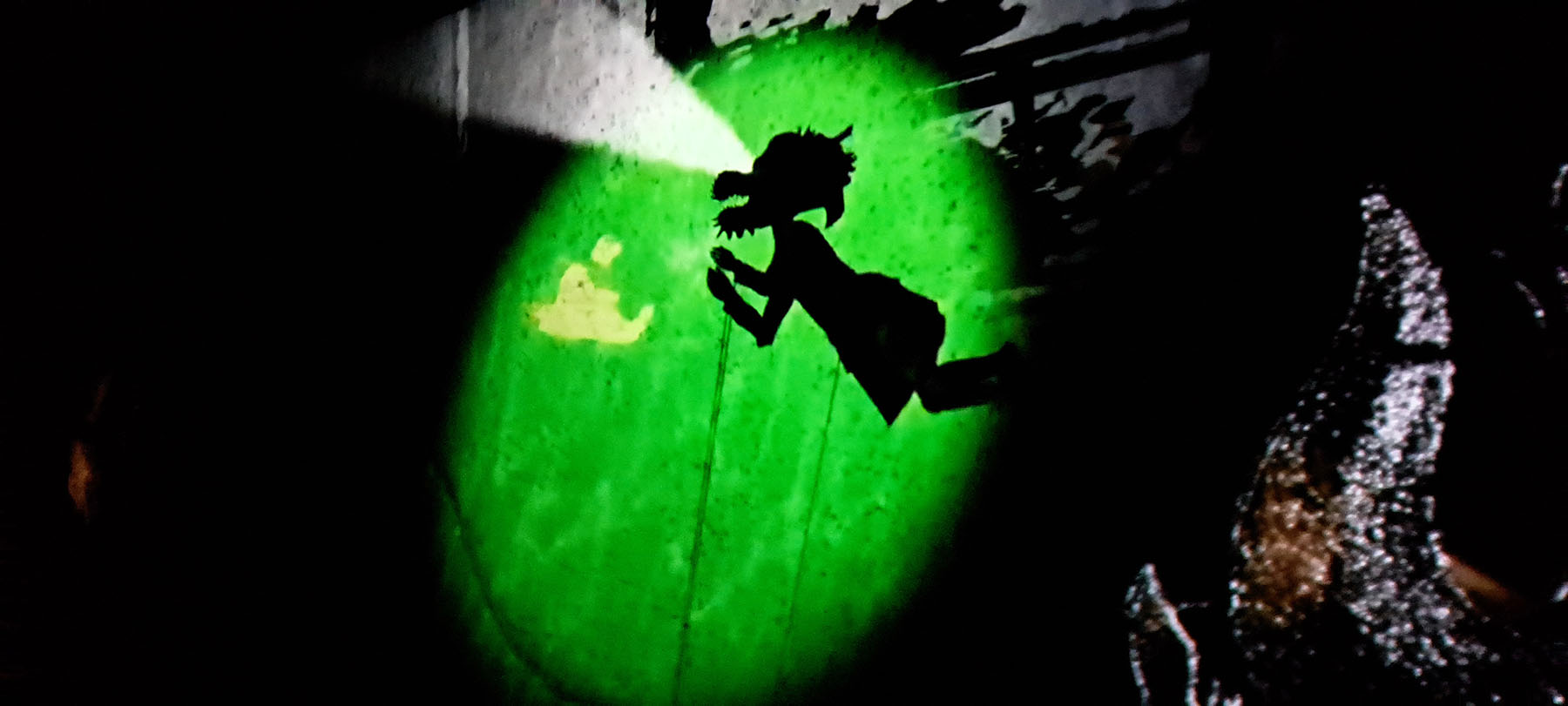 In Tales of the Altersea (2023), Lam Lap-see draws on the journey of her own ancestors from Hong Kong to Stockholm in the ’70s to set up a Chinese restaurant. It is a walk-in immersive 360-degree video installation. Using shadow puppets, Lam tells the story of two sisters who set off on an underwater adventure. Along the way, they come across a dragon boat-shaped restaurant and Lo Ting, a mythological fish-human hybrid figure from whom Hong Kong people supposedly originated.