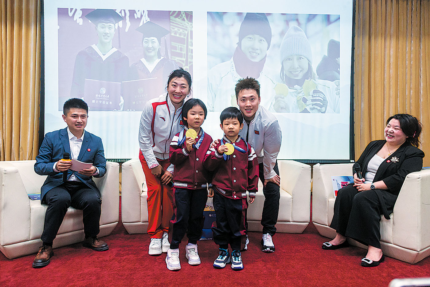 Xu and Wang, who are both alumni of BSU, shared their arduous gold-winning journey at Milano-Cortina 2026 with hundreds of students as part of the university’s “Face-to-Face with Olympic Champions” lecture series on April 16.