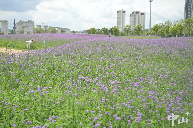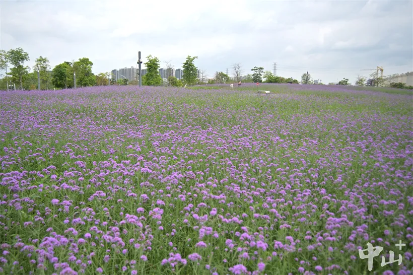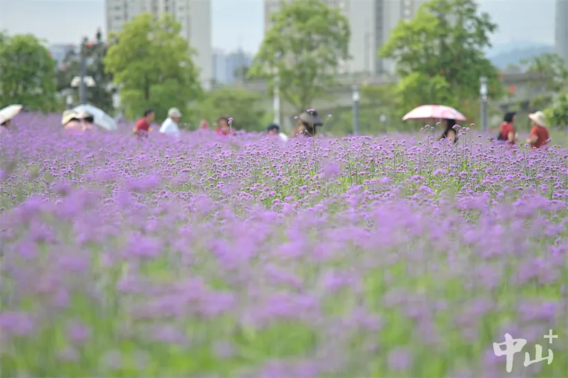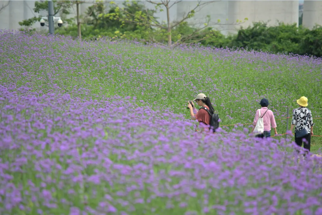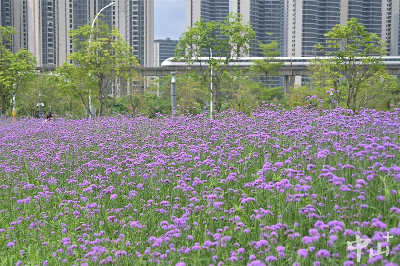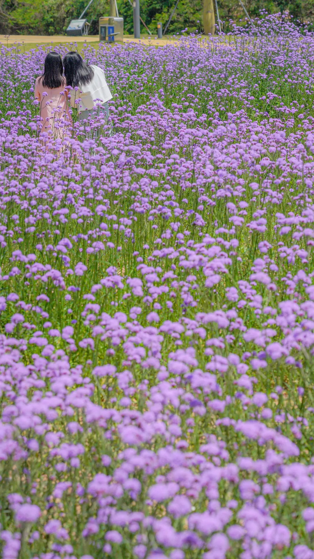 A wave of purple has swept across Zhongshan Talent Park (中山人才公园) in Zhongshan, Guangdong, as its expansive fields of verbena have reached their peak bloom.