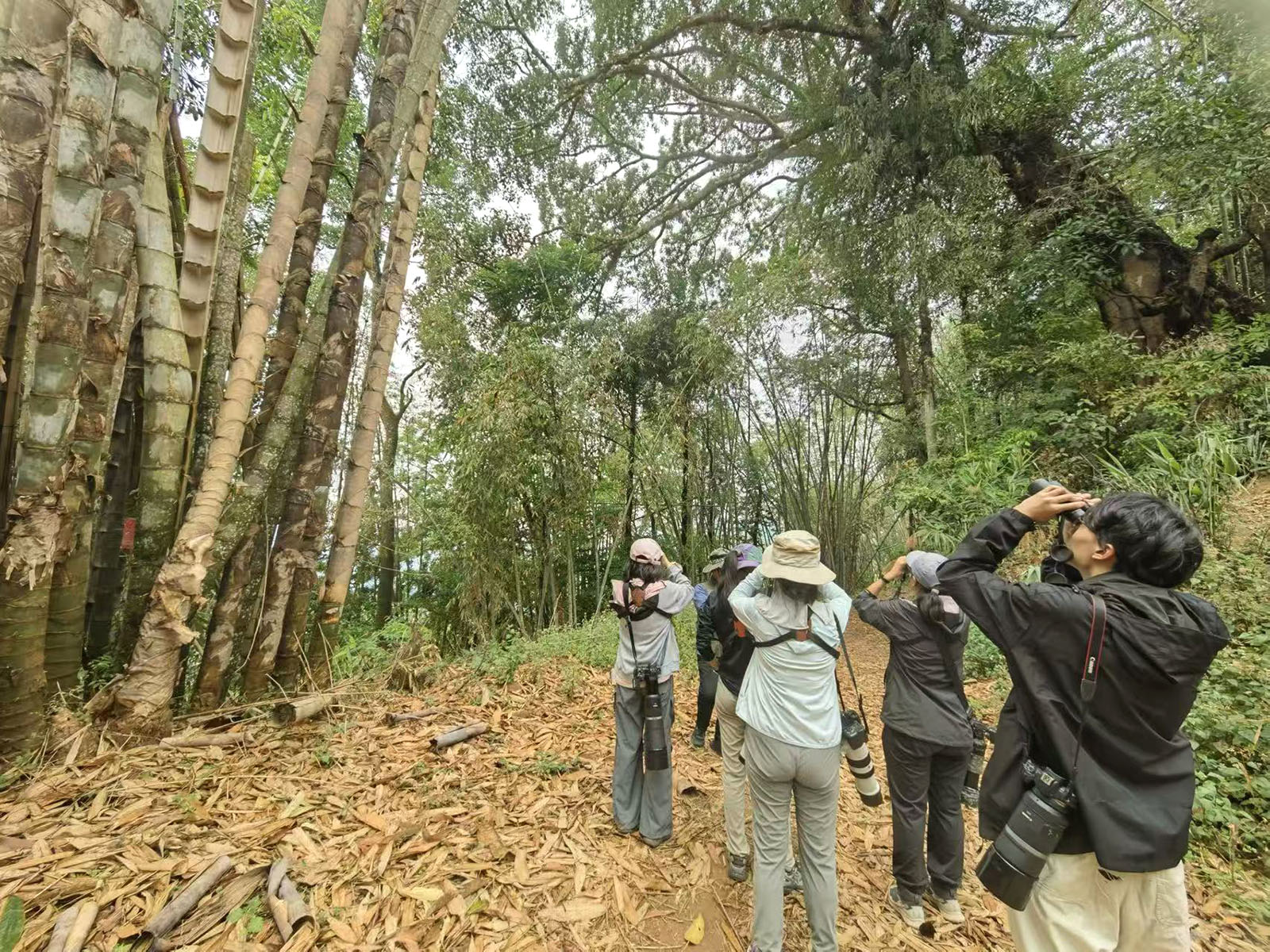 Bird-watchers observe birds around the Nangunhe National Nature Reserve in Cangyuan Va autonomous county, Yunnan province, on April 18, 2026. (XIANG PING / FOR CHINA DAILY)
